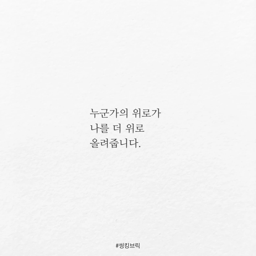 누군가의 위로가나를 더 위로 올려줍니다.위로하는 사람 또한 정서적 높이가한단계 올라가겠죠.우리에게 필요한 건해결이 아니라,그저 몇마디 위로면충분한 것 아닐까 싶어요.그리하여우리 모두를위로.#씽킹브릭#위로