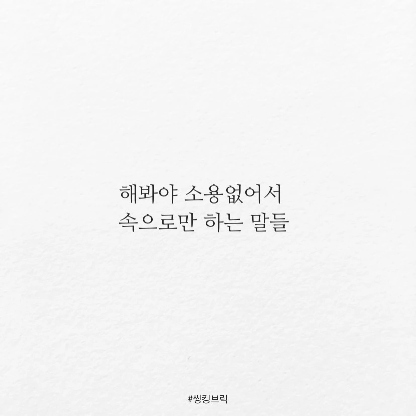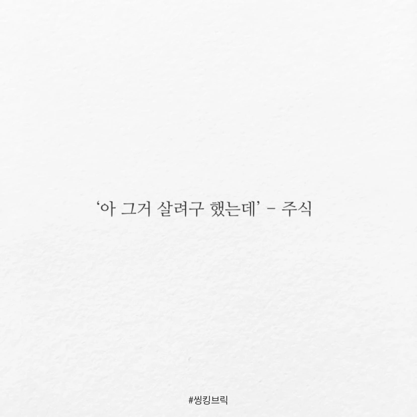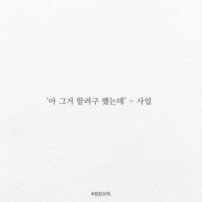 해봐야 소용없어서속으로만 하는 말들 (feat. 본인)‘아 그거 살려구 했는데’ - 주식‘아 그거 할려구 했는데’ - 사업‘ 아 그때 말할려구 했는데’ - 고백맞습니다.바로 지금이 가장 하기 좋을 때입니다.#씽킹브릭