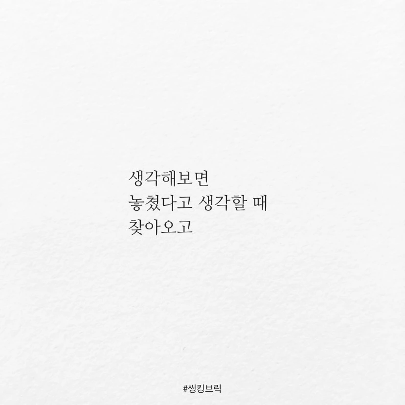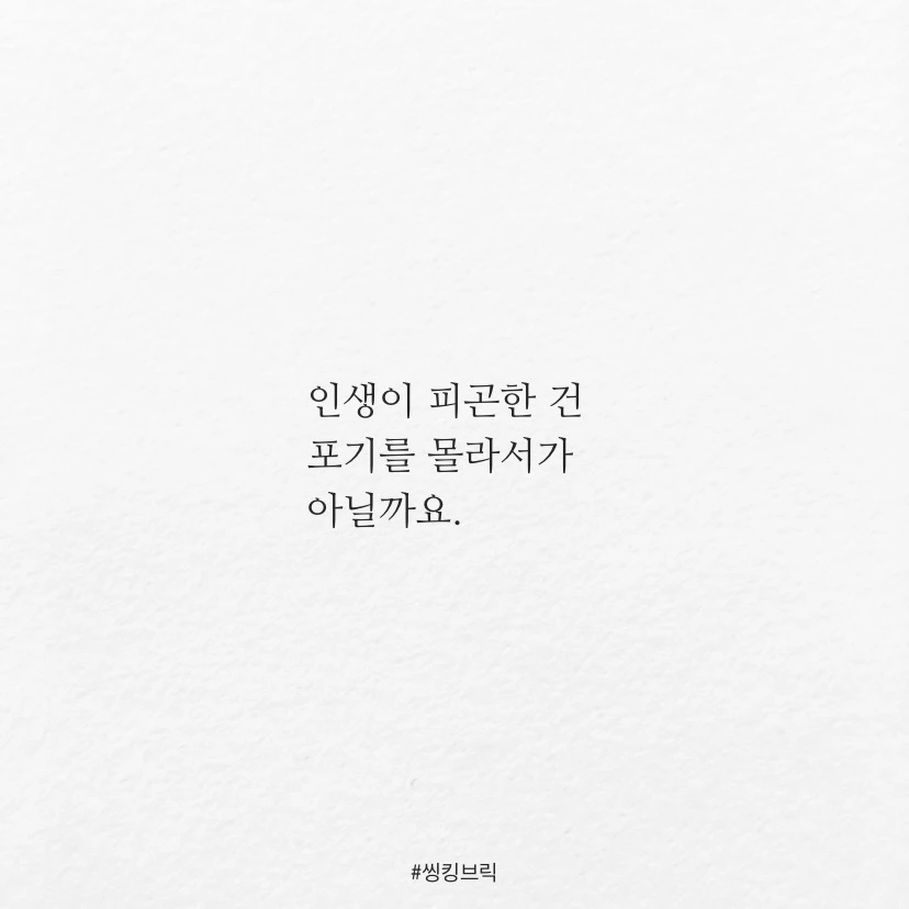 인생이 피곤한 건포기를 몰라서가아닐까요.제 경우에는놓쳤다고 생각할 때늘 기회가 찾아오고,안 될거라 생각할 때오히려 잘 되는 경우가많더라구요.#씽킹브릭#포기가빠른남자