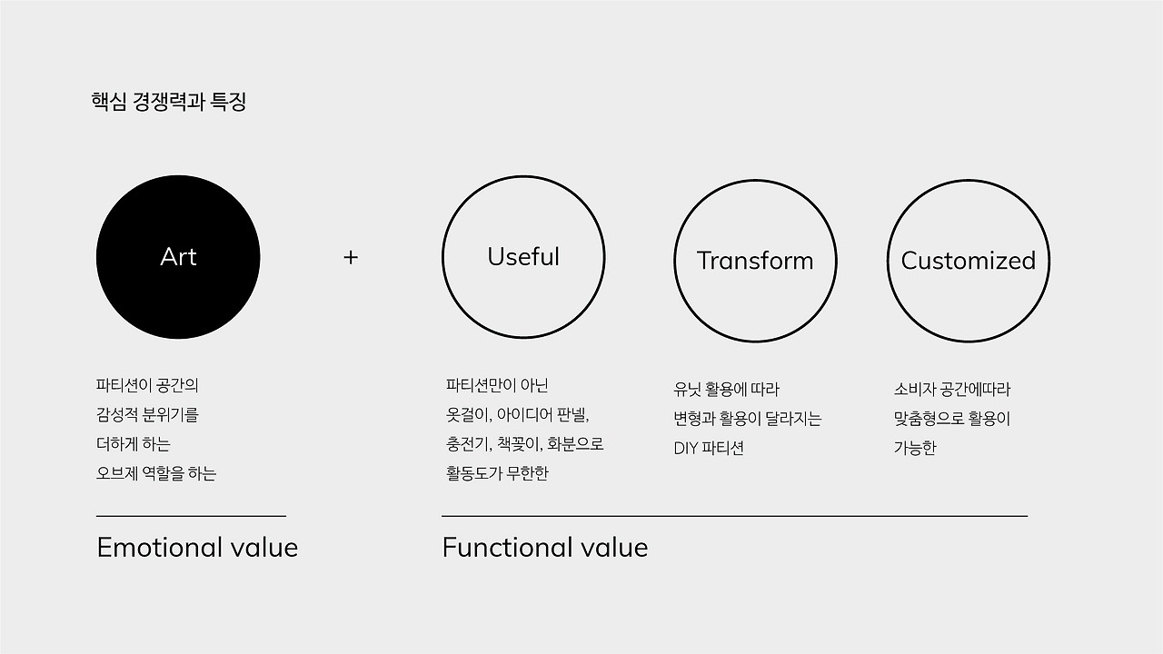 사용성이 좋고 어떤 공간에 놓여도 유연한 적용성과 맞춤형이 가능한 기능적인 면들과 예술적이고 감성적인 면까지 고려한 예술적 파티션. 그 게 바로 파티가 가진 경쟁력입니다. 물론 말이 쉽지 기본을 채우고 그 위에 특별한 감성을 불어 넣는 건 보통 어려운 일이 아니겠죠.