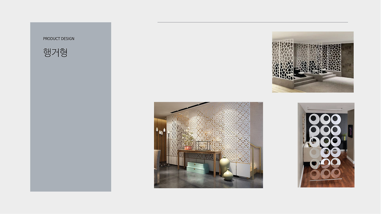 행거형은 앞서 봤던 모듈형과 크게 다르지 않는 형식입니다. 파티션이라기보다는 패턴이 있는 블라인드라도 무방할 것 같습니다. 너무 무겁지 않는 방법으로 가볍게 공간을 나누기에는 좋아보입니다.