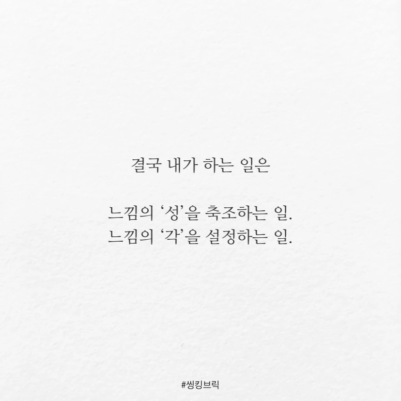 결국 내가 하는 일은느낌의 ‘성’을 축조하는 일.느낌의 ‘각’을 설정하는 일.감성, 감각 그리고 디자인