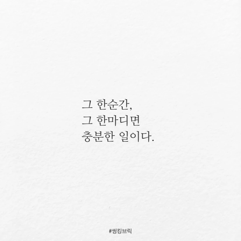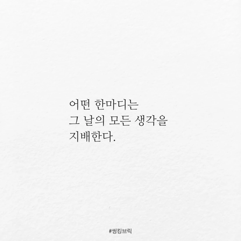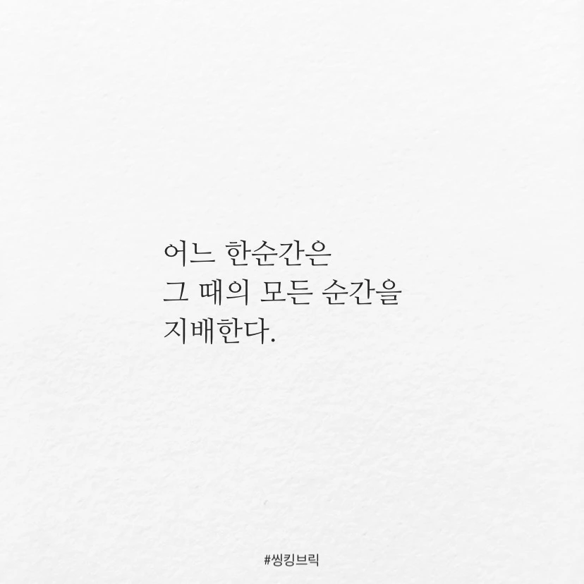 어느 한순간은 그 때의 모든 순간을 압도한다.어떤 한마디는그 날의 모든 생각을지배한다.그 한순간,그 한마디면충분한 일이다.#씽킹브릭