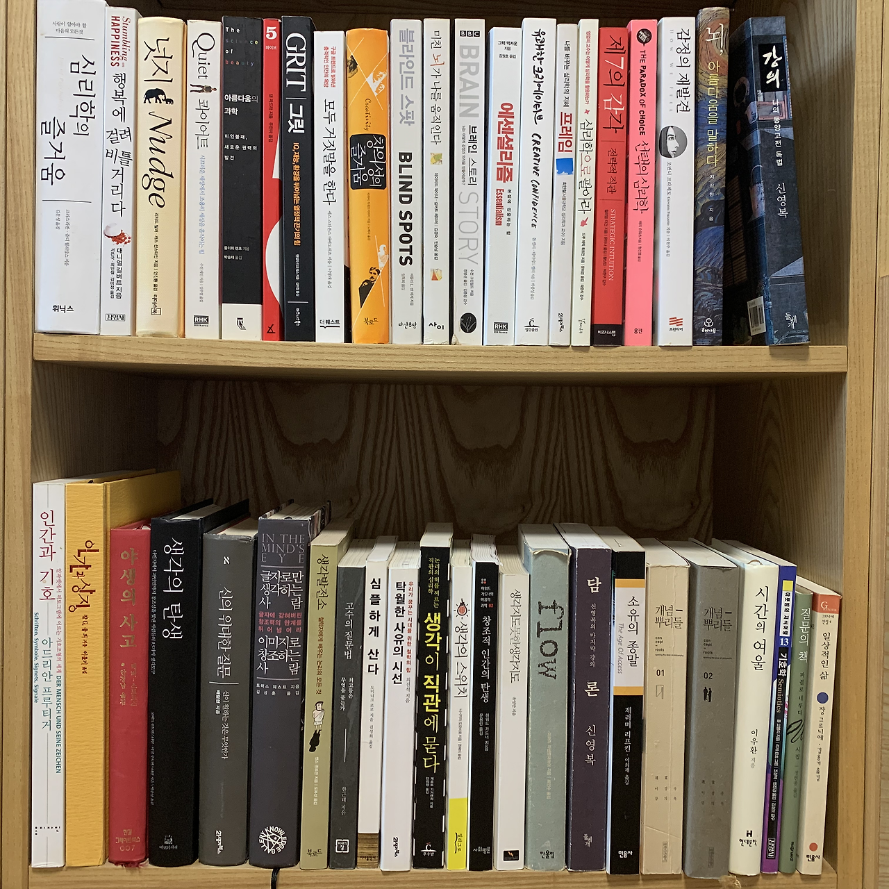 이사를 위해 책장을 정리하고 있습니다. 책 제목들만 모아봐도 읽을 당시 제가 고민했던 문제들이 보이네요. 내용은 별로 기억이 없지만 그때 어디서 왜 샀는지는 여전히 생생하게 다가옵니다.