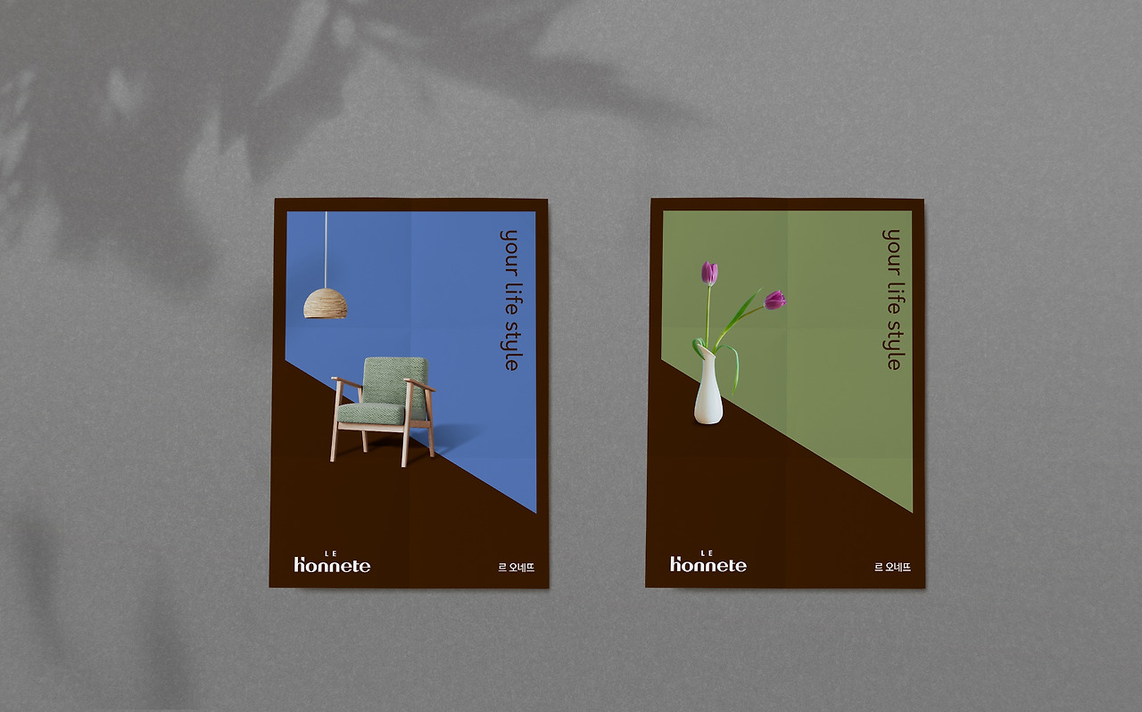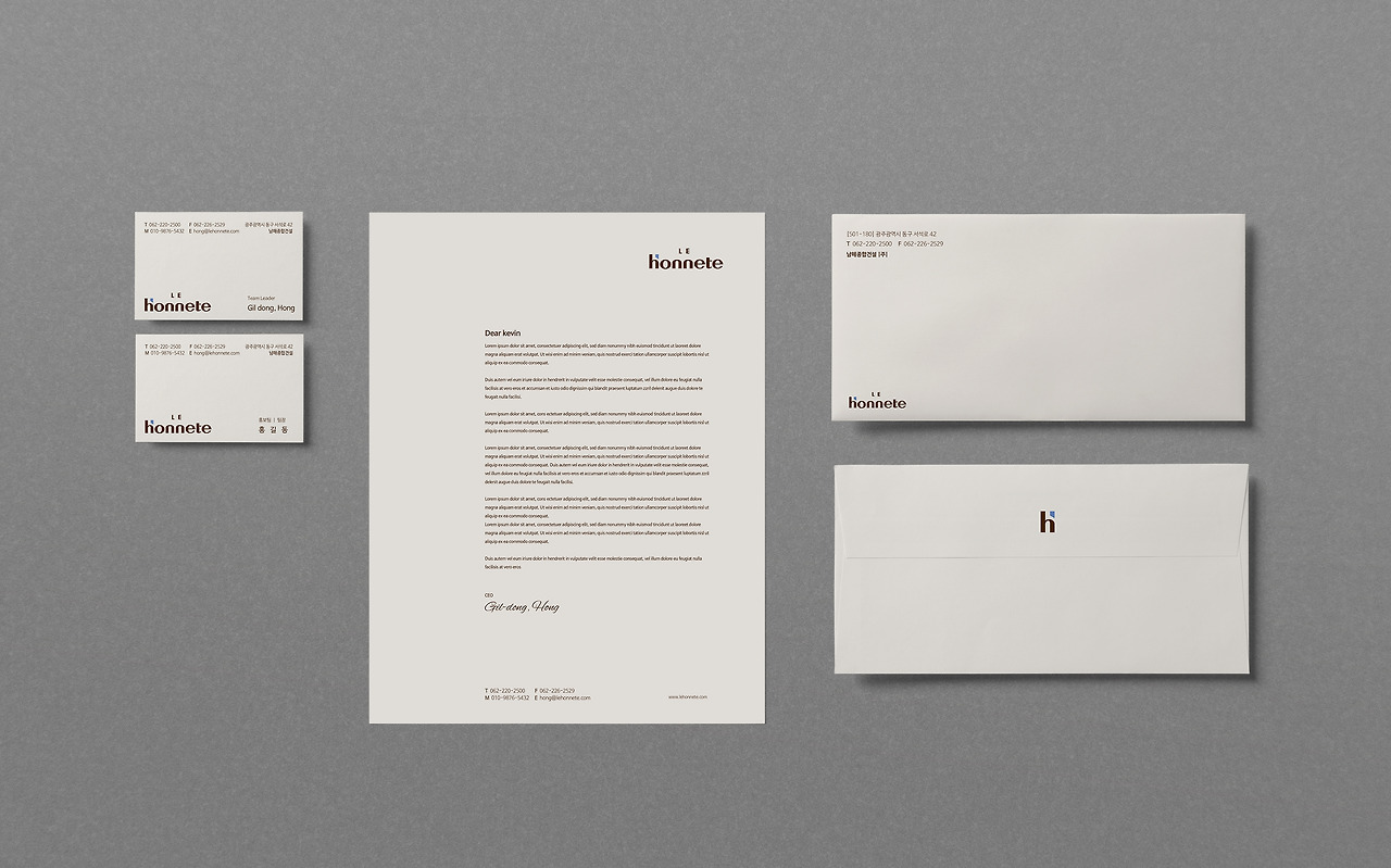 그러한 기대와 상상을 여러가지 응용디자인으로 풀어냈습니다. 고객들이 르오네뜨(Le honnete)와 연관된 디자인을 봤을 때 이 곳이 호텔인가? 이 곳이 디자인 미술관인가? 혹은 이 곳이 잡지사인가?라는 느낌을 받으면 좋겠다는 생각을 했습니다.