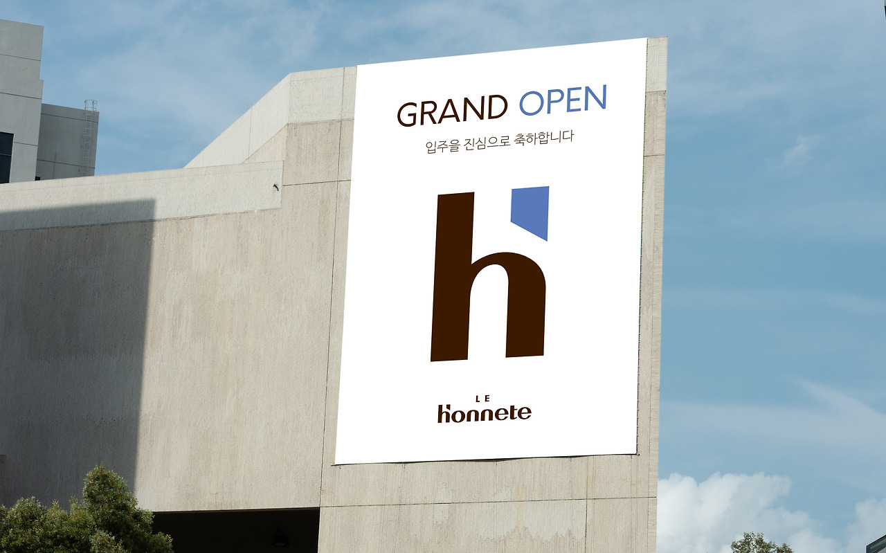 브랜드마크는 새로운 공간을 창조하고 앞 선 생활 감각을 제안하는 르 오네뜨를 상징화하고 있습니다. 소문자 h 안의 창 형태에 시각적 포인트를 두어 브랜드가 고객에게 제공하고자 하는 차별화된 가치를 표현하고 있습니다. 또한 대 소문자를 동시에 표현한 아이디어를 통해 생활 속 소소한 기쁨에서 큰 꿈까지 품어낸 공간이라는 의미를 담아냈습니다.