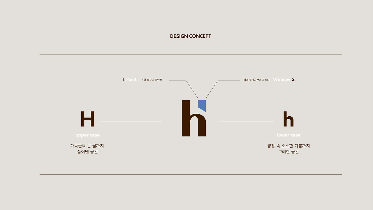 넘쳐나는 아파트 브랜드들 사이에서 새롭고 특별한 공간 창조로 주거 문화의 격을 올리고, 생활 감각의 포인트를 만들어내는 브랜드의 가치와 차별성을 체계화된 디자인 시스템을 통해 구현해 내는 것이 이번 프로젝트의 가장 중요한 목적이 아닐까합니다.