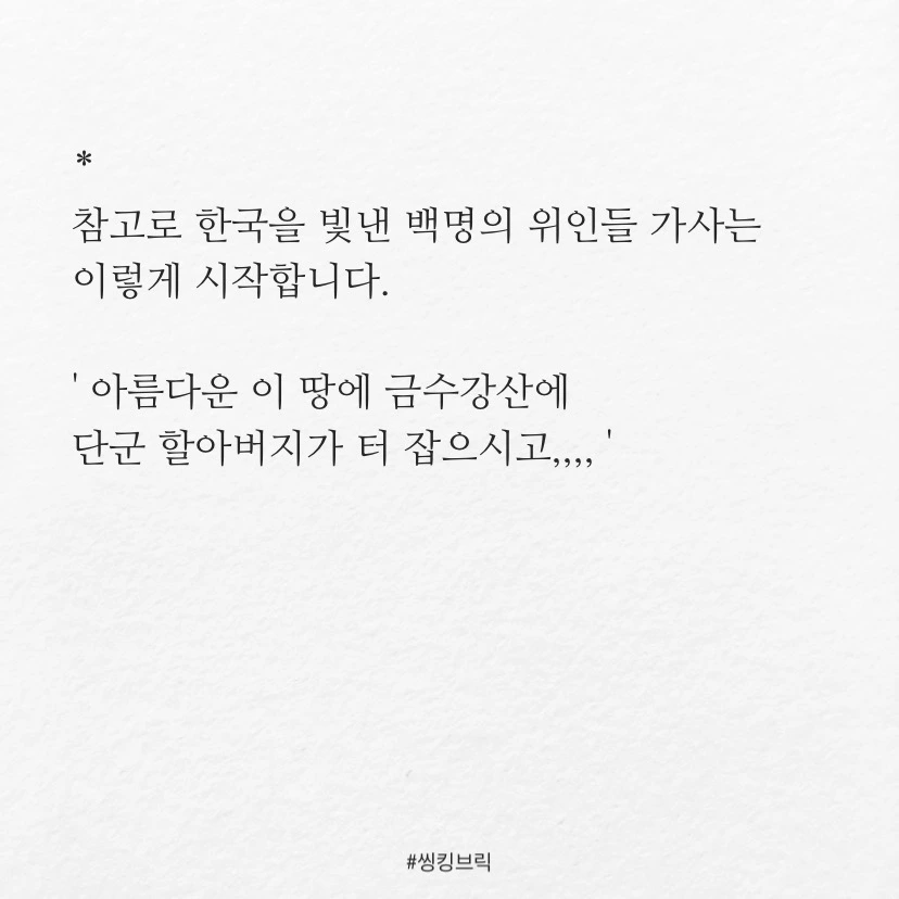 참고로 한국을 빛낸 백명의 위인들 가사는