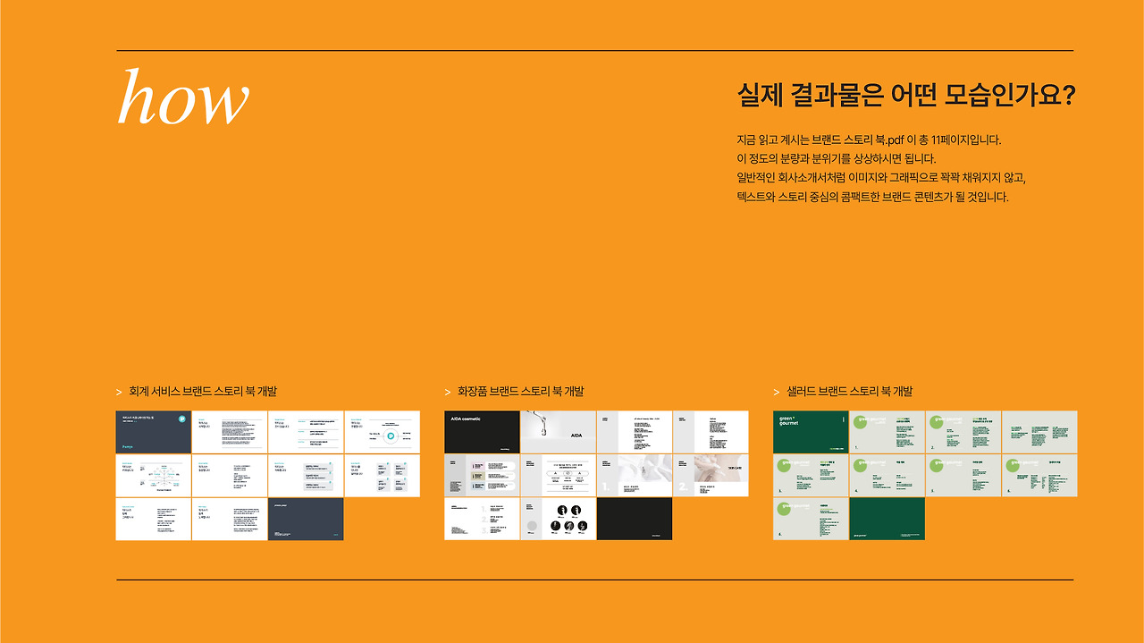 이런 과정 속에 나온 결과물을 저희는 '브랜드 스토리북'이라고 부르기로 했습니다.