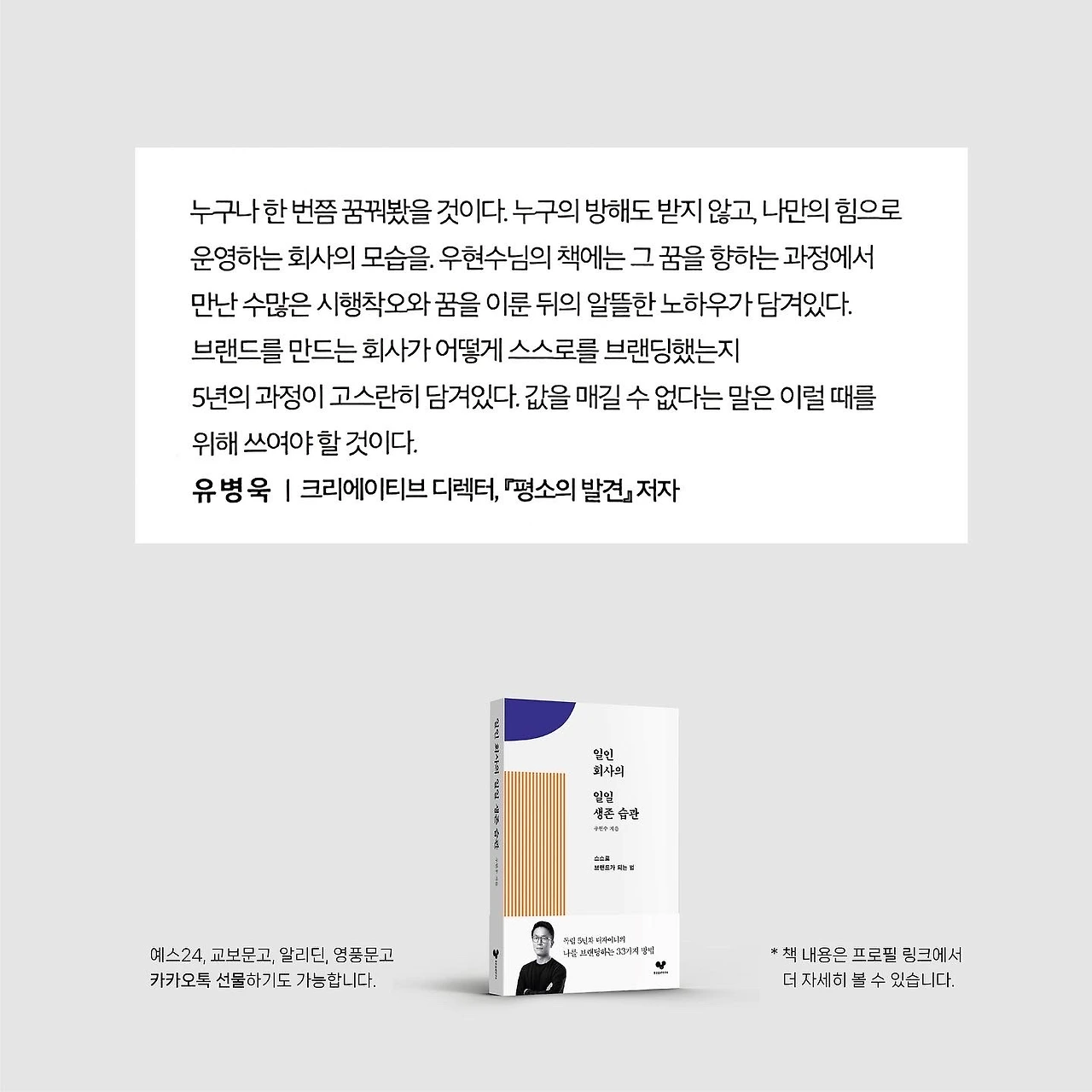 그리고 그 때의 인연으로 유병욱 작가님께서는 이번 저의 책 <일인 회사의 일일 생존 습관>의 추천사까지 써 주셨구요. 이승희님과도 온라인이지만 그때를 인연으로 ‘서로 좀 아는 사이’의 지인이됐습니다.