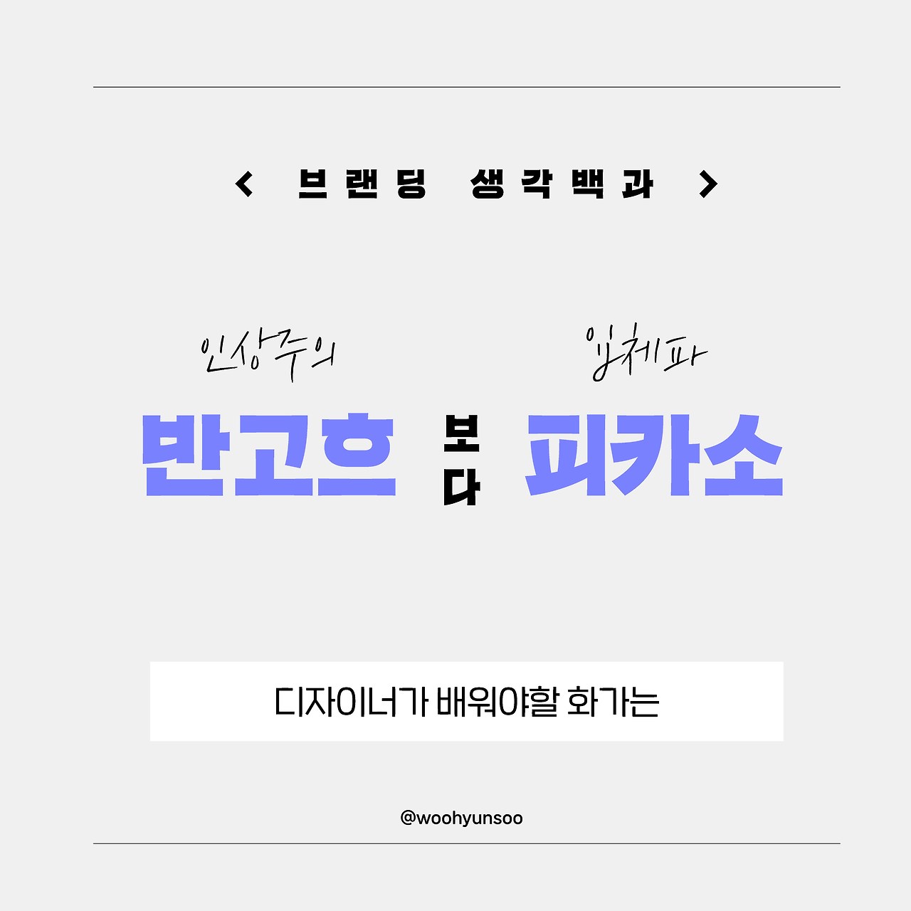 반고흐와 피카소는 누구라도 좋아하는 인류사에서 가장 유명한 화가들입니다. 실력이나 예술적 가치로 이 둘의 우열을 가르기는 불가능하죠.그런데 만약 제가 이 둘 중 한 명의 화가만 골라 배워야 한다면, 그런 말도 안되는 기회가 주어진다면, 망설임없이 피카소를 선택할 것입니다. 디자이너가 배워야할 건 고흐의 인상주의 화풍이 아니라, 피카소의 입체파 화법이라는 생각때문입니다.