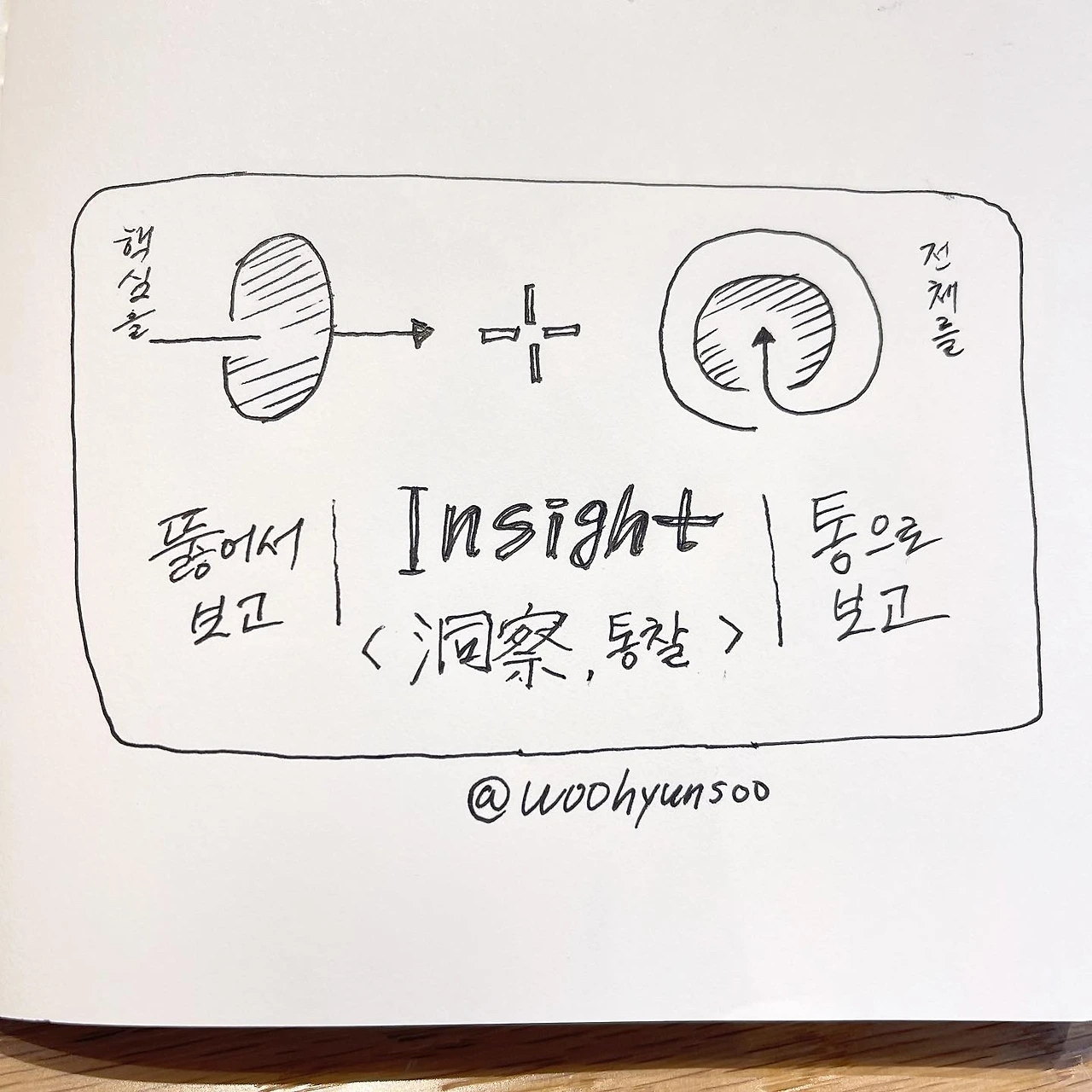 그건 역설적으로 우리 눈에 보이지 않는 것들에 우리가 진짜 알아야 할 것들이 숨어있기 때문이 아닐까 싶습니다. 우리가 알아야 할 본질과 핵심은 우리 알아 보기 쉽고 편하게 알아서 눈앞에 나타나주지 않으니까요. 꼭꼭 숨어있는 이치와 원리를 보기 위해서 필요한 게 바로 '인사이트'겠죠.