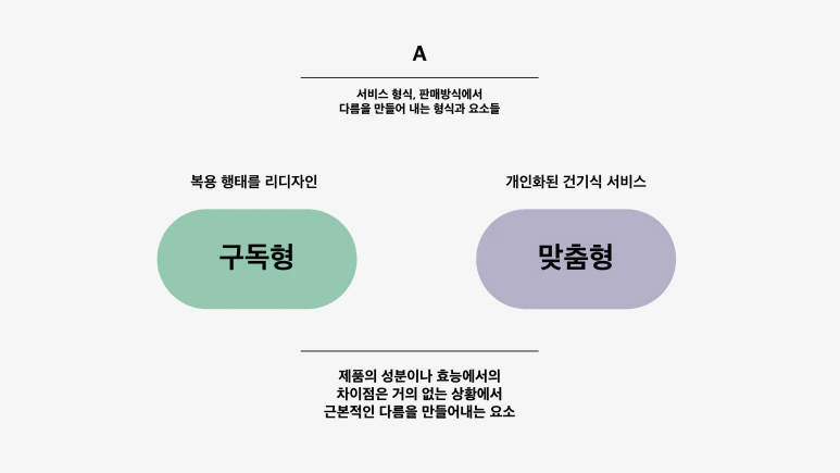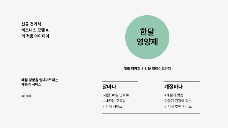 그리하여 구독형으로 복용의 형태를 리디자인하고, 맞춤형으로 개인화된 건기식 서비스를 만들어내야 합니다.