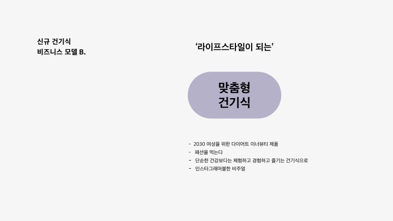 그렇다면 CY 건기식이 만들어내야 할 비즈니스 모델은 어떤 것이어야 할까요? 이미 존재하고 있는 이 거대하고 치열한 시장 안에서 어떻게 성공적인 기회를 찾아낼 수 있을까요?