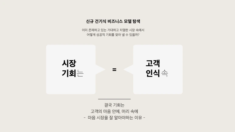 결국 시장의 기회는 고객의 마음 안에, 머릿속에 있다고 생각합니다. 그러니 고객 인식의 과정들을 잘 관찰하고 연구해 그 안에서의 새로운 시장을 찾아봐야 하겠습니다.