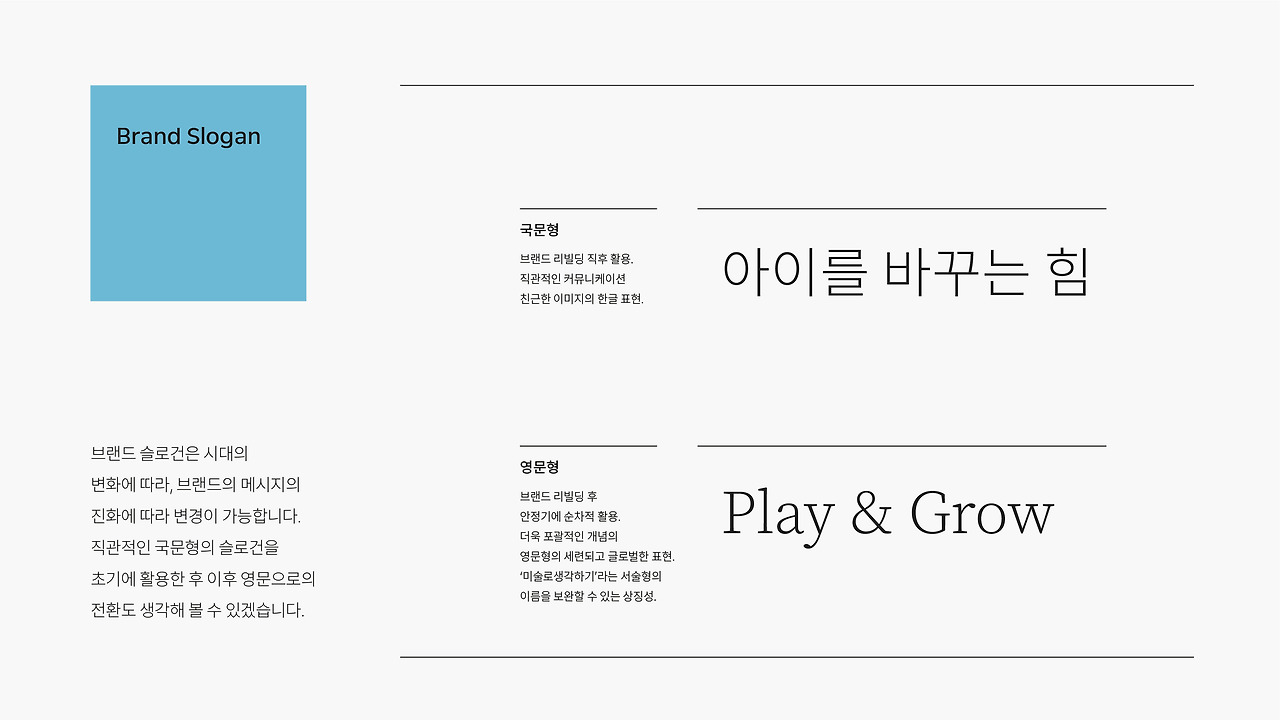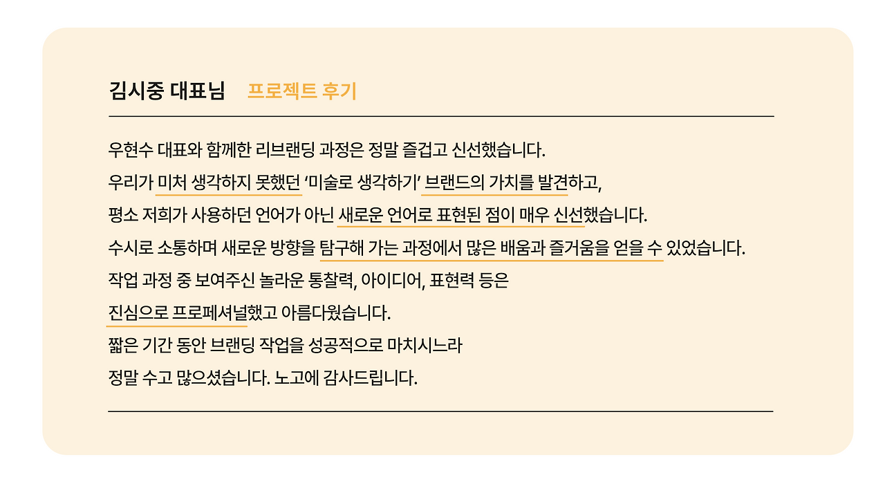 여기까지 <미술로생각하기> 브랜드 컨셉 리빌딩 과정을 설명드렸습니다. 어려운 과정을 함께 고민해주신 김시중 대표님, <미술로생각하기> 구성원분들께 감사드립니다.