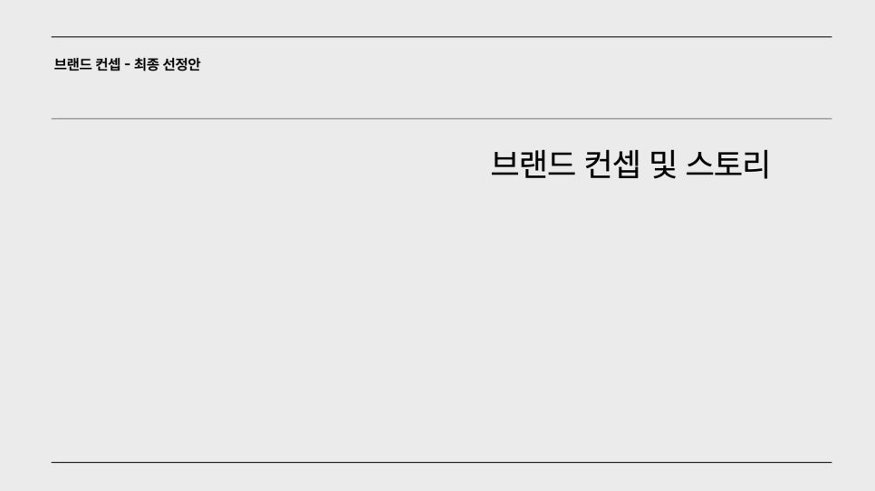 이렇게 총 네가지 방향성으로 브랜드 컨셉을 탐구하면서 이 것들을 다 통합하고 하나로 묶어 낼 수 있는 품이 넓고 상징성도 있는 브랜드 컨셉이 만들어졌습니다.