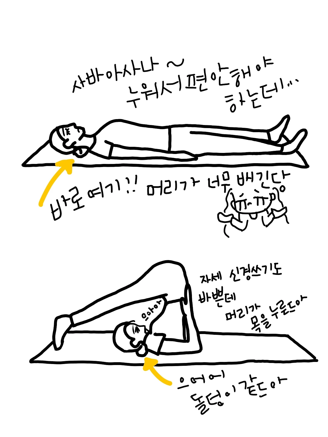 나 사실은 요가할 때 머리가 뒤통수에 배기고 자꾸 흘러 내려서 운동을 할 수가 없어 머리를 감고 말리는 것도 일이고 말이야
