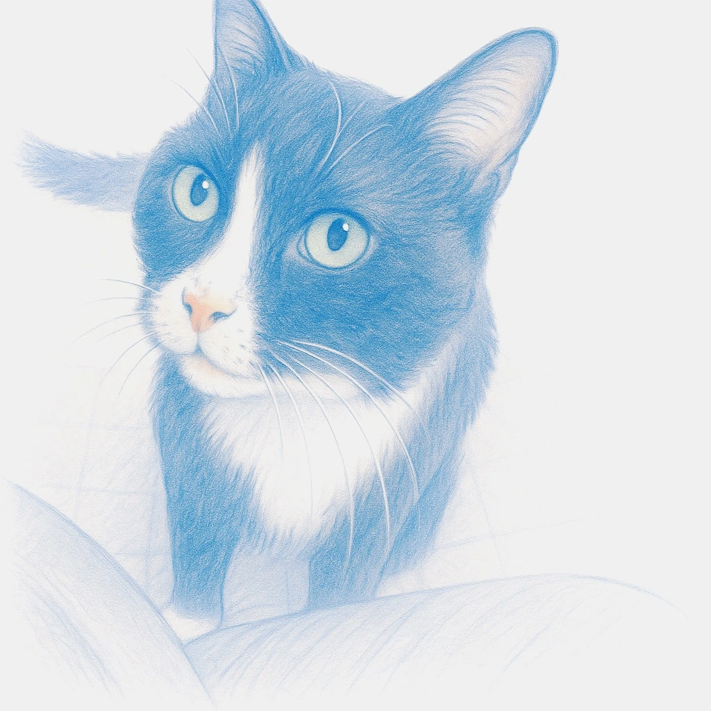 정적을 가르는 가느다란 울음소리. 어스름한 불빛 사이로 네가 천천히 모습을 드러냈다. 빛바랜 턱받이와 회색 구두, 낡은 턱시도를 걸친 듯한 모습. 길 위에서 새겨진 상흔들 사이로도 묘한 품위가 배어 있었다. 그 순간, 내 안의 무언가가 조용히 너에게로 기울었다.
