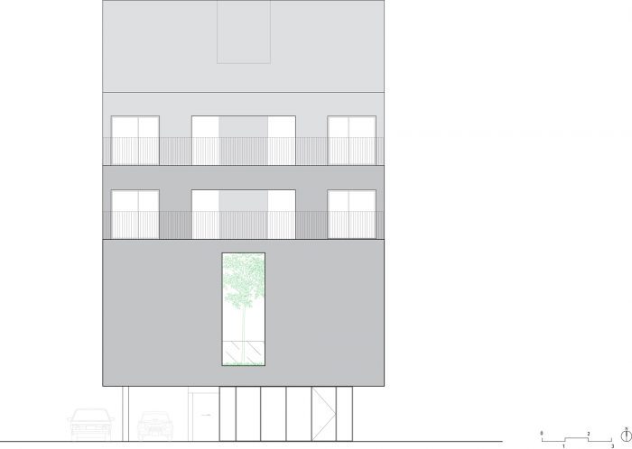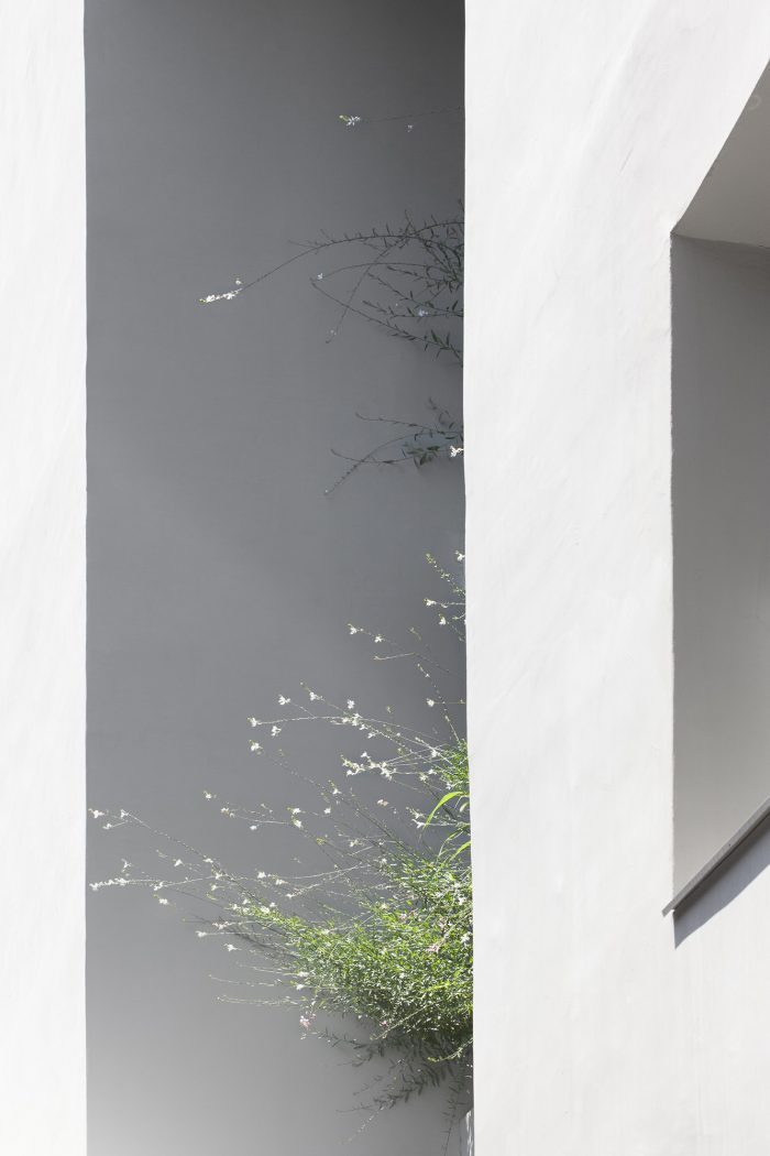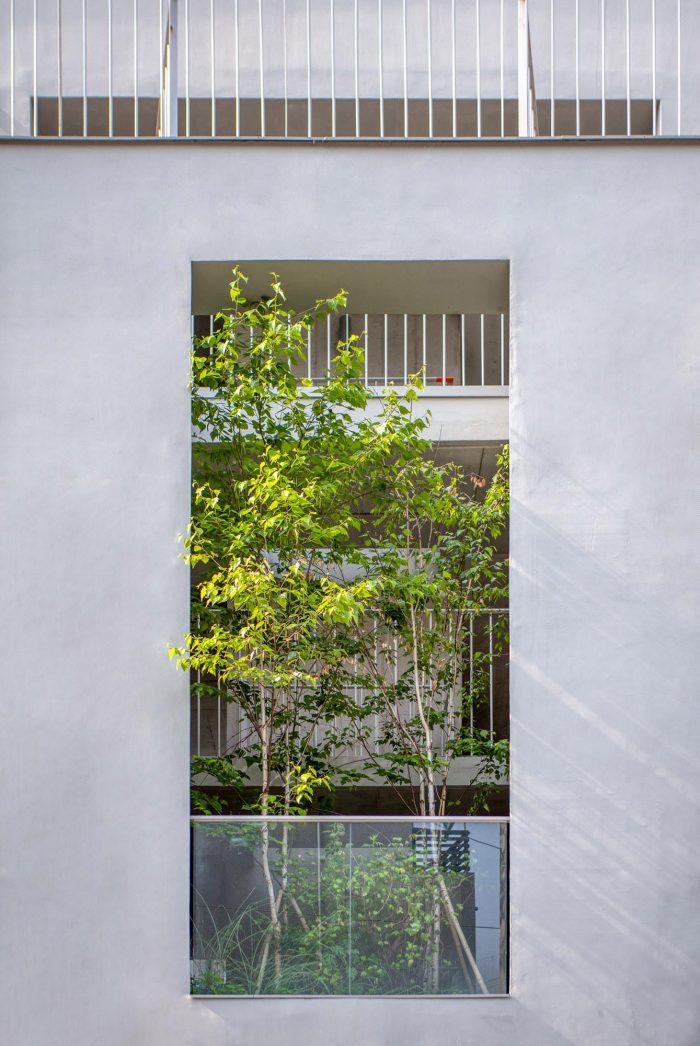 “건물과 마주했을 때 오프닝과 나무만 보이도록 북쪽 도로에서 보이는 입면에 창을 뺐어요. 움직임이 있는 식물이 건물 한가운데에 있으면, 파사드에 자연스러운 변화가 끊임없이 생기리라 생각했죠. 유일주택의 경우 도로와 맞닿아 있는 북향과 후면부인 남향 공간 사이에 단차가 있어요. 지하 성큰 가든으로 더 많은 햇볕이 들어갈 수 있도록 의도한 부분이에요. 사선제한을 북쪽으로 받으니까, 남쪽에서는 가능한 많은 햇볕을 끌고 들어가고 싶었어요.” – 박창현 건축가(에이라운드 건축 대표)