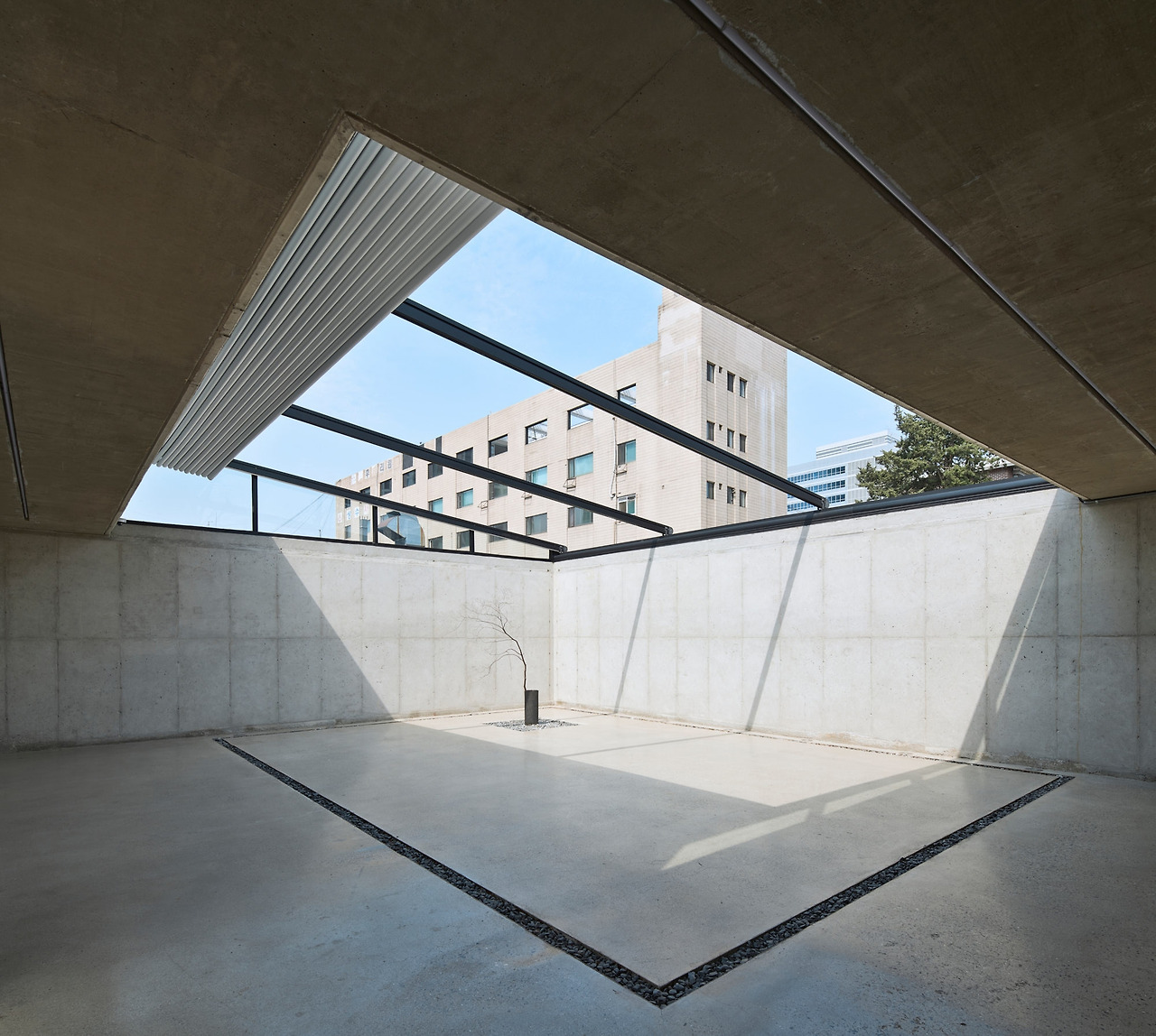 네 개 동을 연결하고 나니 자연스럽게 공간에 위계가 생겼다. 프로그램이 바뀔 때마다 동선도 다채로워졌다. 공간을 경험하는 이들에게 재미를 주는 일종의 ‘시퀀스Sequence’가 생긴 것. 이를 극대화하는 것은 네 개 동을 연결하는 장치이자 공간의 장면 전환이 일어나는 짧은 브리지bridge다. 브리지의 벽은 유리로 만들어 건물과 건물 사이를 볼 수 있게 했다. 브리지를 지나며 기존 건물의 낡은 외벽을 마주할 때, 옛날 금속 가공소 터의 흔적을 인지하는 경험이 일어난다. 이런 경험을 의도하고자 기존 벽을 마감하지 않고 그대로 남겨 두었다. 또 한 가지 중요한 시퀀스는 외부 공간. 코사이어티의 감초 역할을 하는 정원이다. 어디에서든 자연을 느낄 수 있도록 내부와 외부를 연결했다. 계절의 변화는 시간의 시퀀스를 경험하게 한다. 입구 역시 인상적인 시퀀스가 일어난다. 자루형 부지(도로에 접한 출입구가 자루의 입구처럼 좁게 생긴 토지)로, 좁은 골목길로 진입했을 때 처음에는 건물이 잘 보이지 않지만, 걸어가면서 조금씩 드러나는 건물의 모습을 볼 수 있는 색다른 경험을 할 수 있다. 상업 공간으로써는 불리한 조건이 오히려 매력적인 공간감을 만드는 데 일조했다.