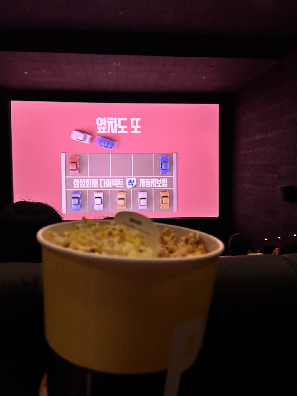 오랜만에 방문한 영화관은 여전히 사람들로 가득 찼고, 우린 팝콘을 먹기 위한 줄에 서서 무엇을 먹을지 고민한 것 같아.