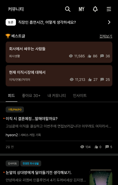 커리어 고민이나 직장 생활 문제를 공론화하는 장인 셈이죠.