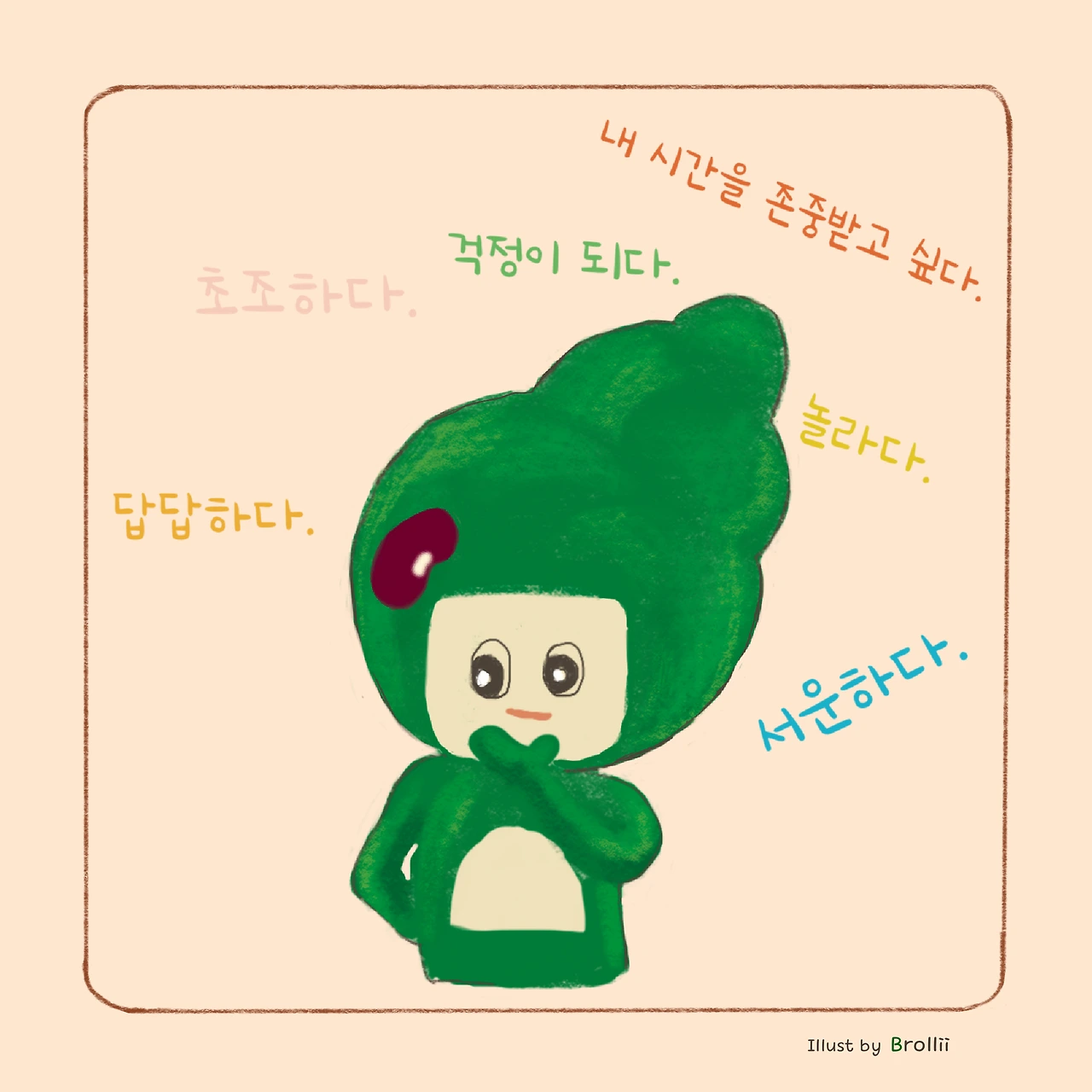 References : 최석재. (2008). 감정동사의 유형과 그 의미특성. 최석재 어문논집, (58), 127-159. Barrett, L. F. (2019). How Emotions Are Made. [감정은 어떻게 만들어지는가?] 김이서. (2022). 우울한 기분은 식탁에서 생긴다.