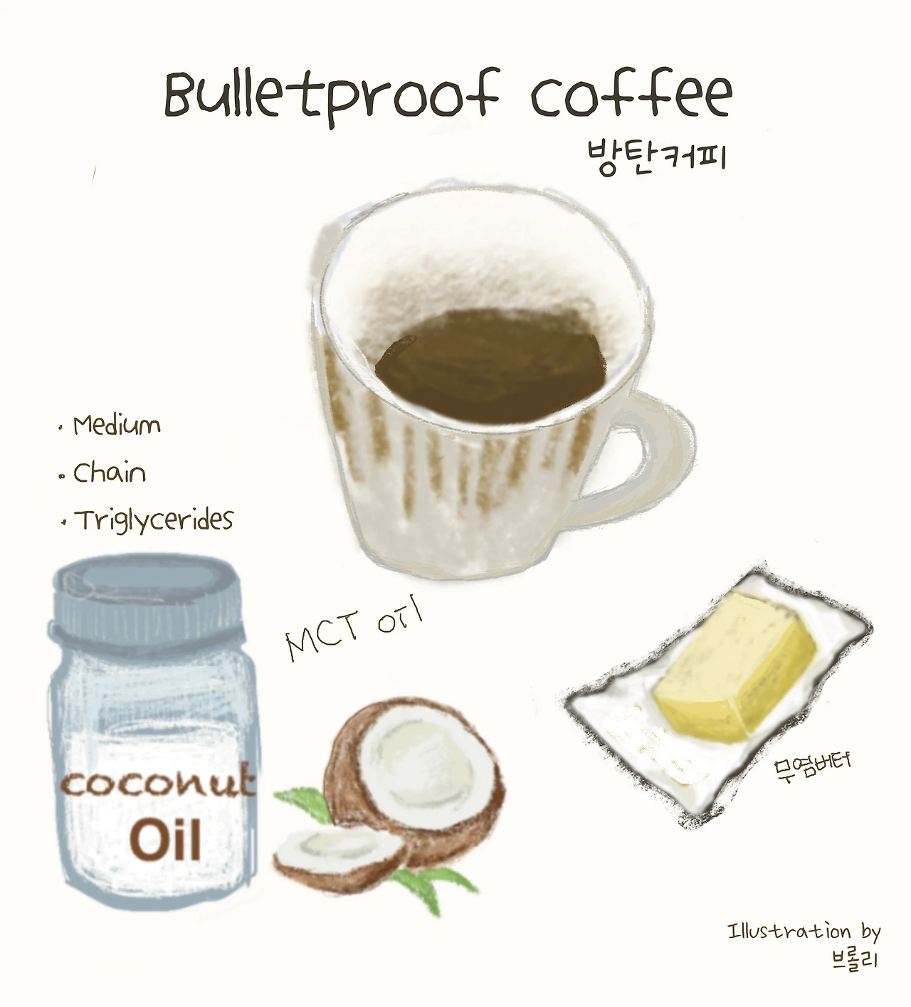 Bullet coffee = 아메리카노 커피 + MCT 오일 + 버터(무염)