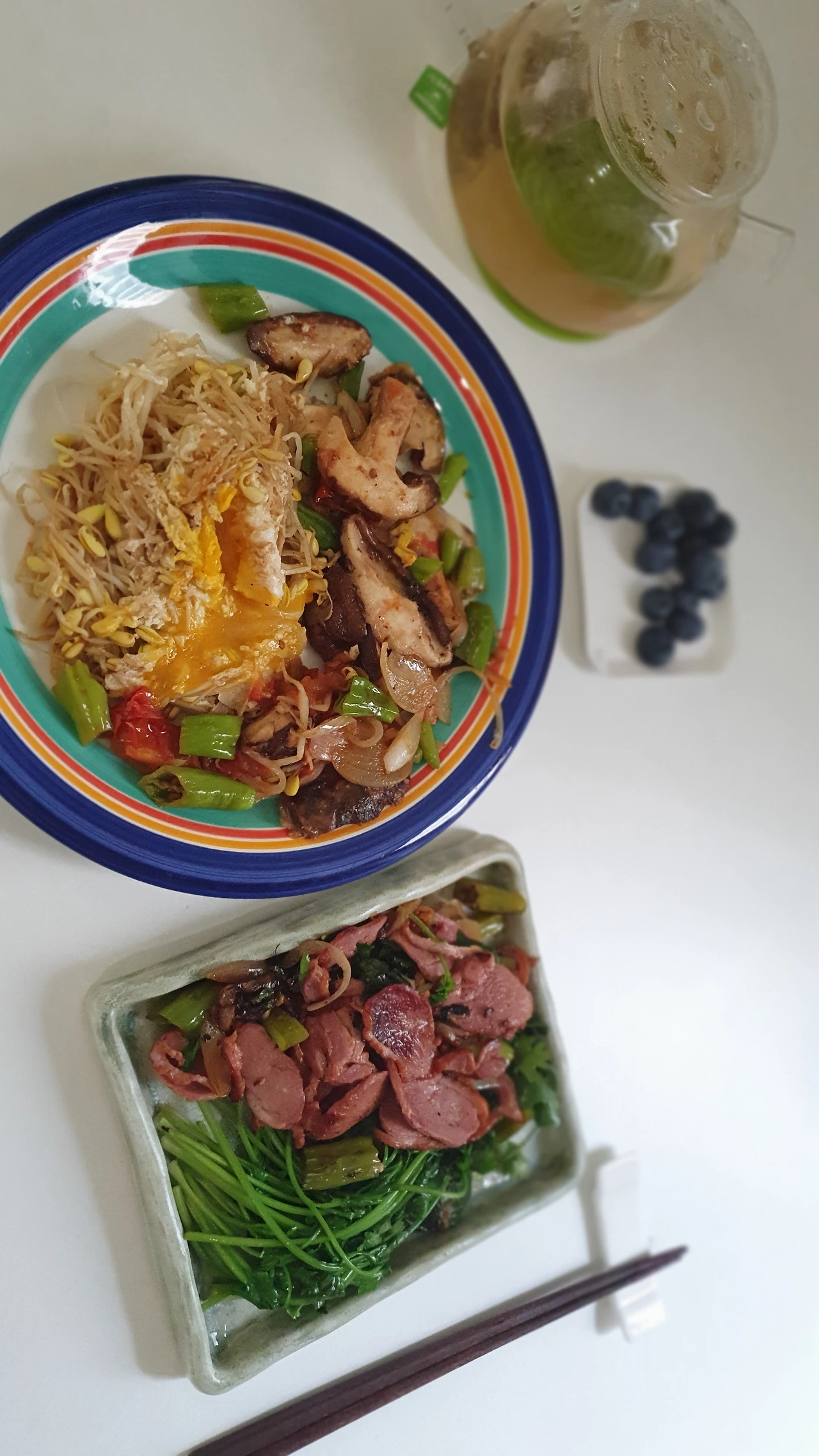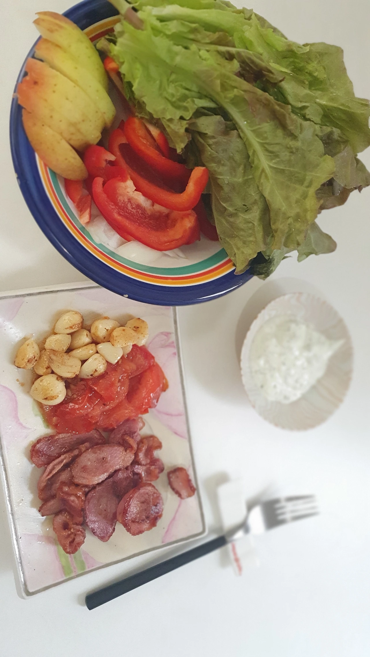 요리를 전혀 하지 않던 나는, 우선 깻잎과 토마토 그리고 양파를 썰어 넣고 거기에 아몬드 + 올리브오일 + 발사믹 식초로 샐러드를 만들어 이것을 메인 식단으로 한다. 그 위에 다양한 단백질 종류(닭, 오리, 돼지, 소, 계란, 건두부)를 토핑 하는 방식으로 바꿔봤다. 우선 요리는 쉽고 지속 가능하게 만들 수 있어야 한다.