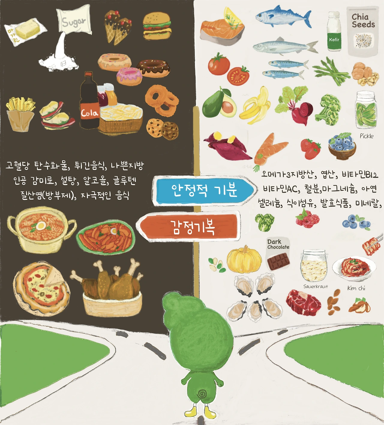 식습관이 기분에 영향을 미친다는 연구를 뒷받침 하는듯 하다.