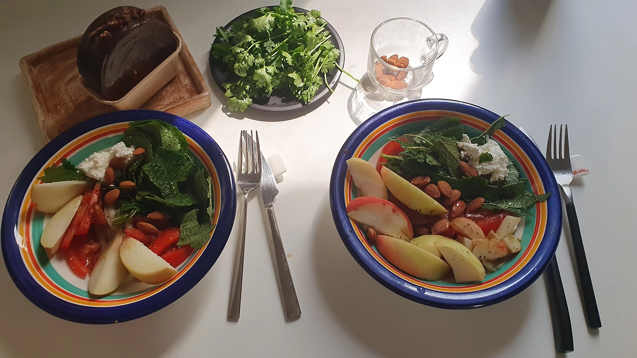 만드는데 12분 정도밖에 걸리지 않으므로(매우 느린 손 기준), 착착 준비해서 잘 구운 고기와 먹으니 식사 시간이 즐거웠다. 아삭아삭 씹는 맛에 더하여 뭔가 몸이 더 좋아질 것 같은 그런 기분까지 합쳐지면 뿌듯했다. 무엇보다 외식비도 절약되고, 식사 후에 피곤한 느낌이나 졸리지 않은 것이 가장 큰 변화였다. 뇌가 좀 더 명료하게 깨어 있는 느낌이랄까? 전반적으로 야채를 많이 곁들이는 식습관을 하니 마음의 성질도 바뀌었는지 삶에서 찾아오는 크고 작은 스트레스에 강하게 반응하기보다는 그냥 순응하며 흘러가도록 내버려 둔다.