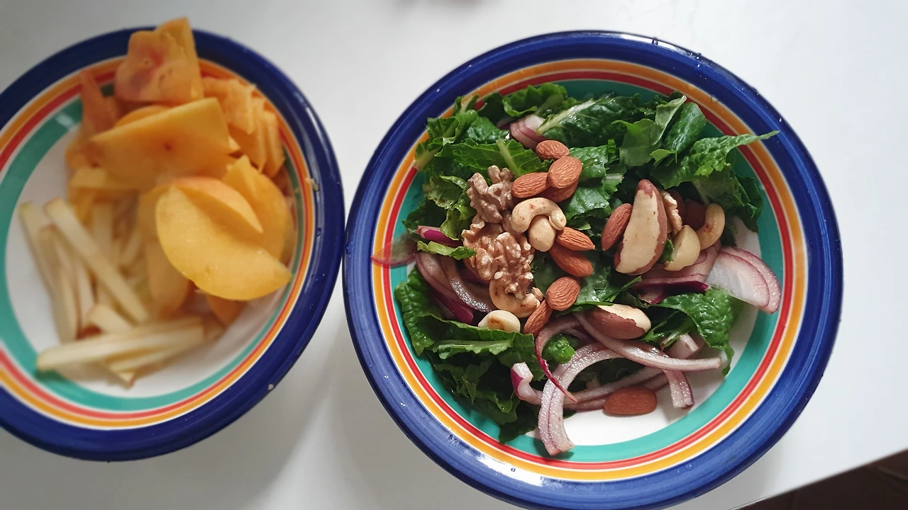 그런데 지금은 매일 야채와 과일 그리고 견과류가 주식이 되었다. 식습관의 대혁명을 이뤄냈다. 개인적으로 정말 역사적인 일이다.