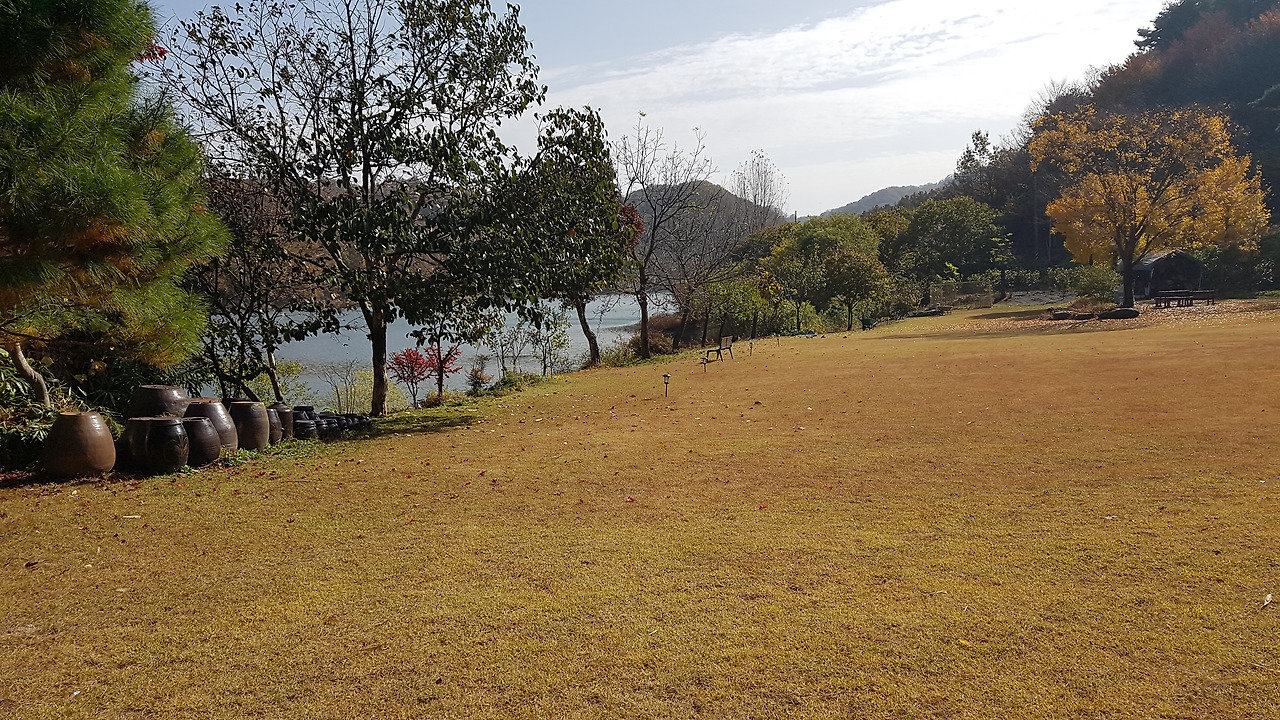 소로 입구에 나란히 서 있는 장승을 지나 걸어 들어가다 별장 같은 집을 만났다. 예쁜 작은 집이라 하려다 우리는 집의 뒤뜰을 보고 부러움에 입이 벌어져 발길을 멈추었다. 넓은 잔디 깔린 정원 앞이 바로 호수였다. 무릎 높이로 쳐진 금지선을 성큼 넘어 들어가 커피 한 잔 마시며 앉아 있으면 어떤 느낌일까? 막상 주인은 자주 바깥에 나오지 않을지 모른다. 저런 풍경은 우리처럼 가끔 보는 사람들이 좋아하는 법이다. 집은 인적 없이 고요했다. 넓은 잔디밭과 집은 호수의 습기에 젖어 있었다.