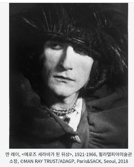 내면의 여성성을 여성 분장으로 드러내 보이는 사진도 있었다. 사진으로 보는 그의 정체성은 혼돈스러워 보였다. 자유로운 영혼이어서 일까? 그는 다양한 정체성을 갖기를 원했다. ‘에로스 세 라 비(Eros c'est la vie)', 가명의 뜻은 '사랑, 그것이 인생이다’.