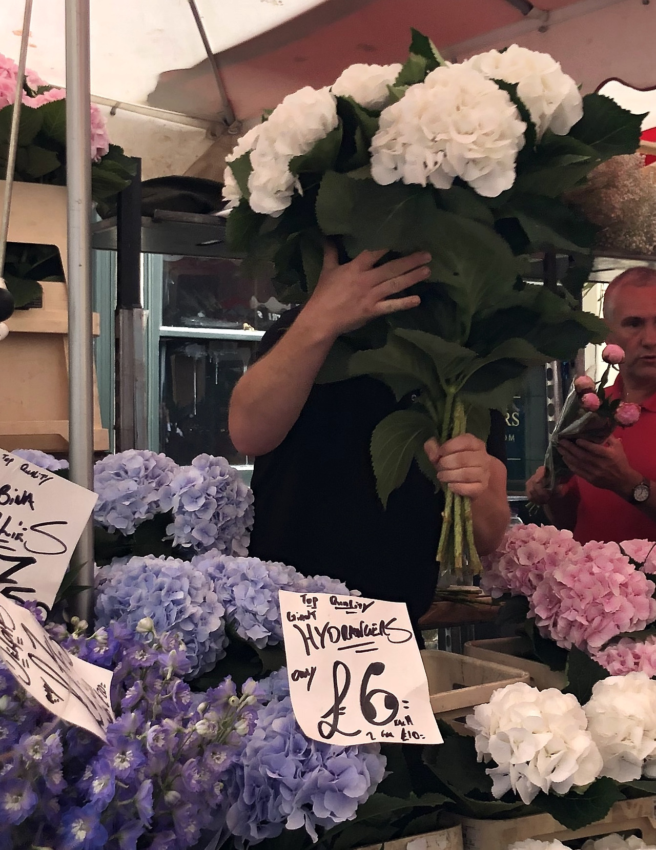 사진에서 보이는 것처럼 꽃의 종류는 정말 다양했다. 그중에서도 수국과 백합, 해바라기가 정말 예뻤다. 노란색, 보라색, 빨간색... 색상도 치우침 없이 다양했다. 한국의 꽃시장을 떠올리면 도매와 소매 판매가 함께 이루어지고, 가격을 흥정하는 양재 실내 꽃시장의 모습이 그려지는데, 콜롬비아 마켓은 조금 다르다. 이 곳에서 꽃을 사는 사람들은 판매 목적이 아닌 개인의 공간을 꾸미기 위함이 대부분이다. 런더너 그리고 영국 사람들에게 꽃과 가드닝은 인생에서 아주 큰 부분을 차지한다고 한다. 나이대도 10대에서 노인까지 다양하고, 꼭 꽃을 사지 않더라도 소풍 나온 기분으로 이 곳을 즐기는 사람도 많다. 도보권에 쇼디치와 해크니 같은 핫플레이스들이 즐비해있어 일요일 낮의 이 지역은 '생생함' 그 자체이다.