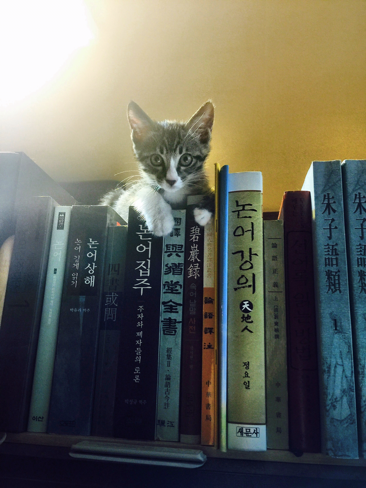 뛰어다니는 모습이 토끼같기도 하고 다람쥐 같기도 합니다. 어떨땐 원숭이 같기도 하구요. 꾸륵꾸륵 소리를 내는데 꼭 비둘기 소리같습니다. 한시도 가만있지 못하는 것이 과잉행동장애, 혹은 정서불안은 아닐까요. 때로는 스파이더맨이나 도마뱀처럼 방충망을 타고 창문위까지 질주합니다. 책 위에서 춤도 춥니다.