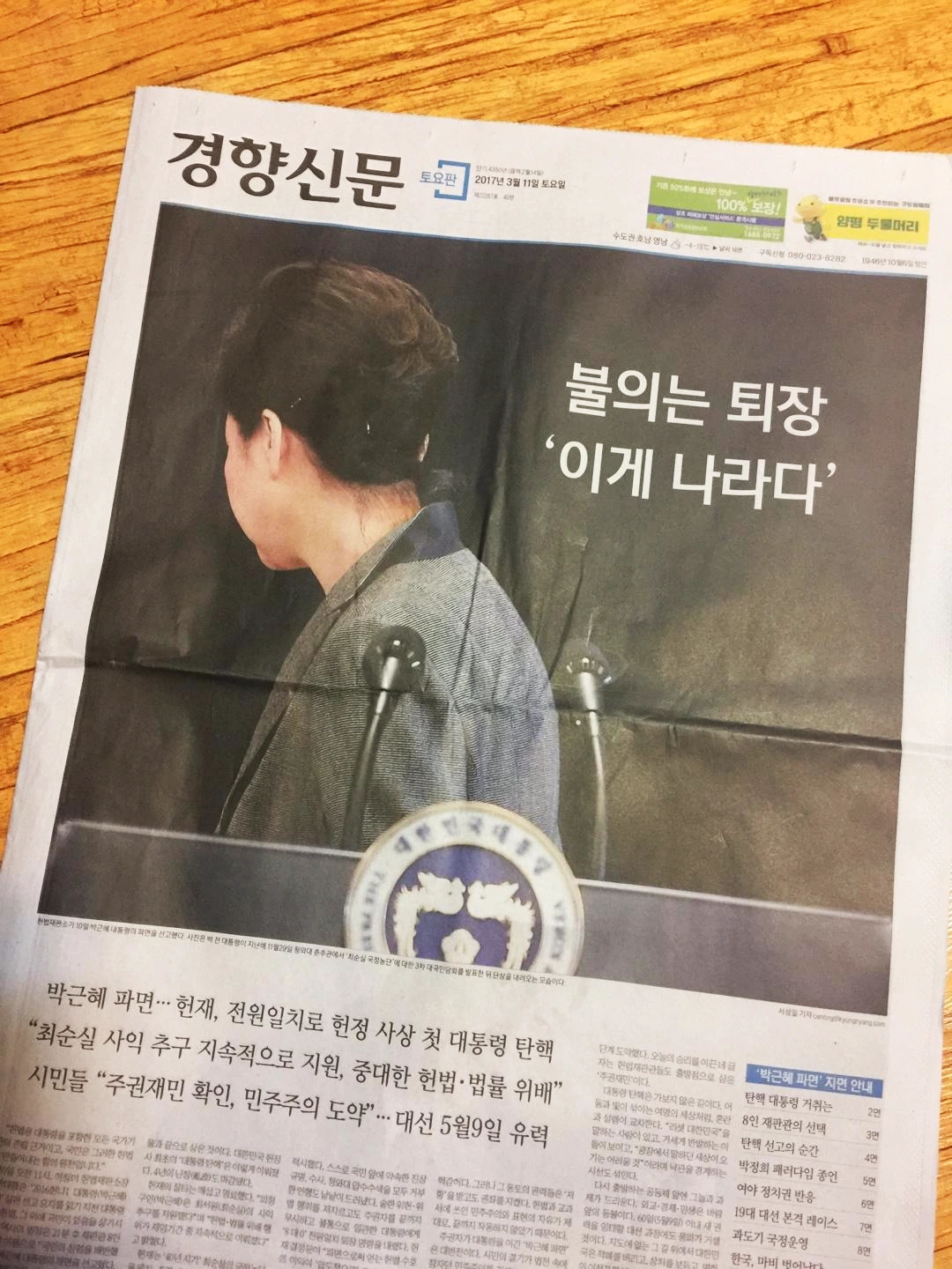 아름다운 경향신문의 1면
