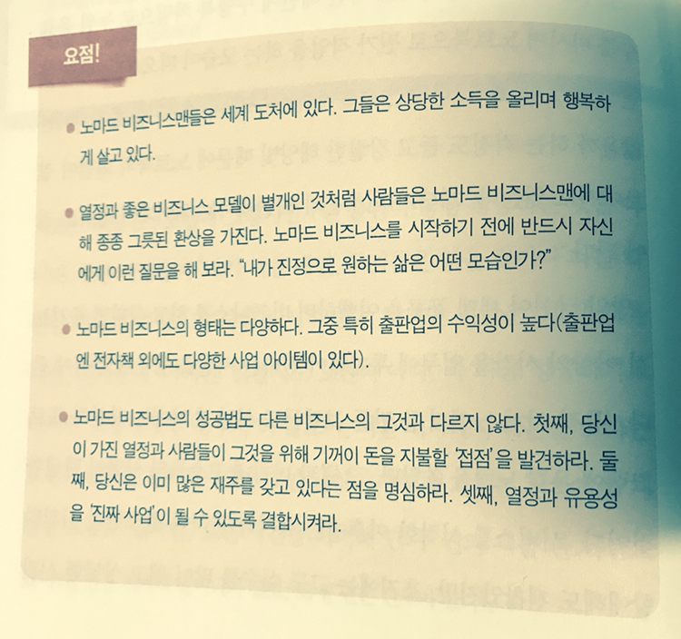 크리스 길아보의 [100$ STARTUP]은 노마드 직업에 대한 이야기를 포함해 개인의 아이디어를 전업으로 발전시킨 다양한 사례와 실전적인 방법을 담고있습니다.. 아마도 이 책의 가장 큰 장점은 선택의 기로에 서 있는 당신에게 결정할 수 있는 용기를 줄 수 있다는 것일 겁니다.