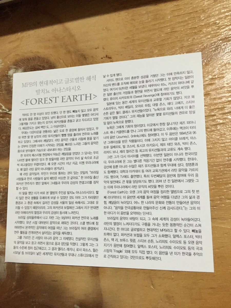 위 사진은 그의 음악적 정수가 담겨있다는 FOREST EARTH 앨범과 국내 발매시 사용되었던 그의 소개이다..
