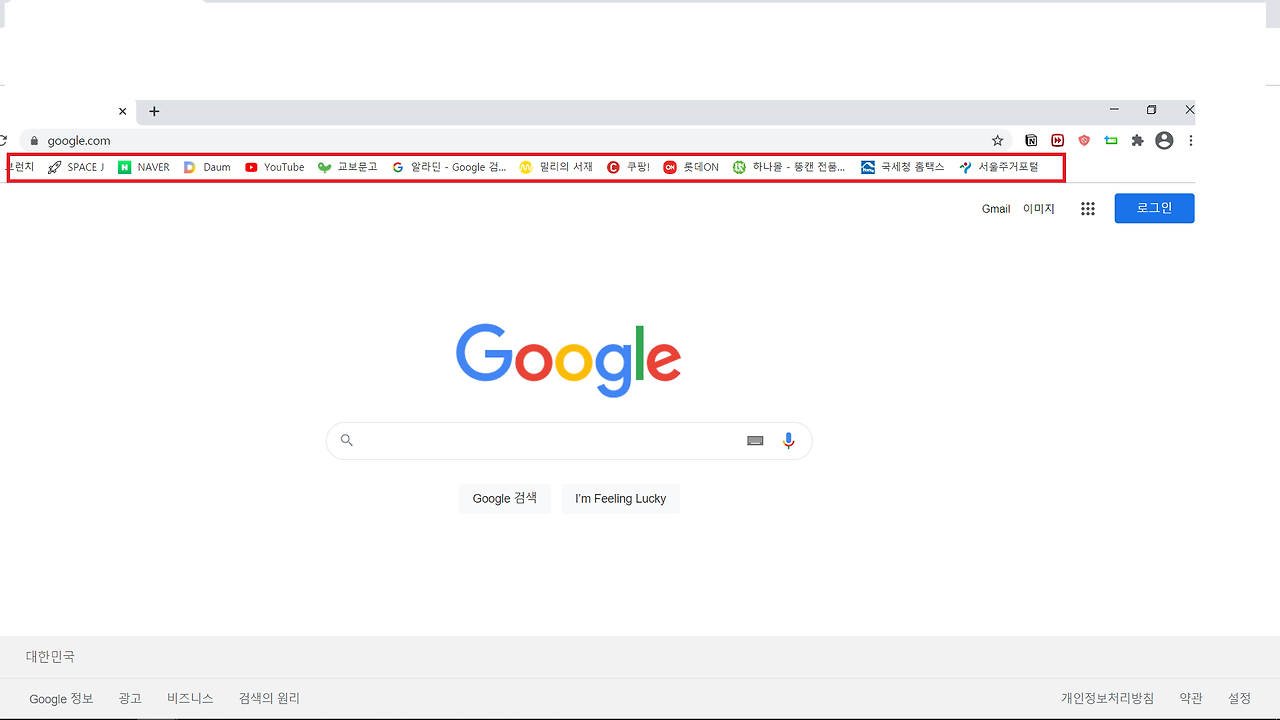 <확장 프로그램을 설치하기 전의 크롬 브라우저의 북마크>
