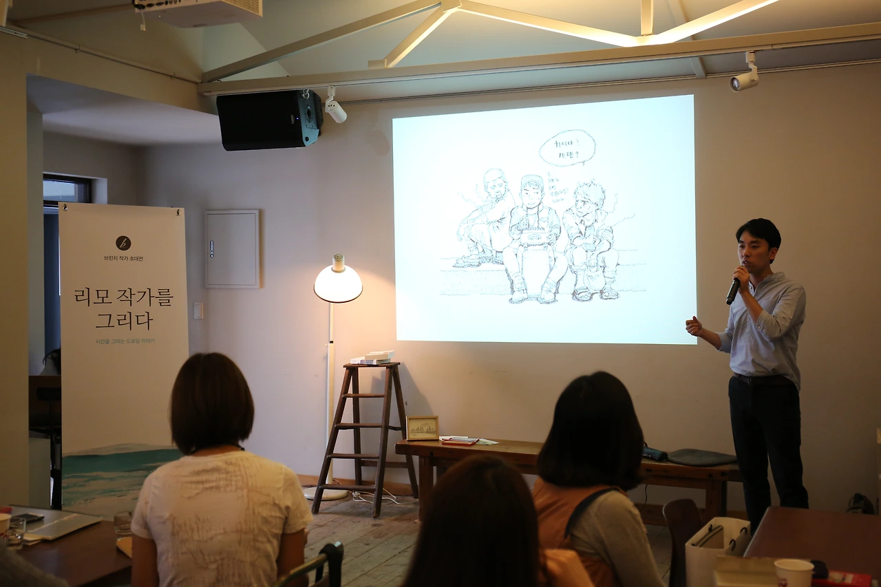 작가님의 강연 중 가장 놀라웠던 부분은 훌쩍 떠난 것 같았던 38일 간의 유럽여행이 사실은 철저한 계획하에 준비된 여행이었다는 것이었습니다. 연일 계속되는 야근에 지쳐 자신이 좋아하는 것을 하면서 사는 새로운 삶을 꿈꿨다는 작가님의 이야기를 들으면서, 당연히 그 여행은 충동적이었을 거라고 생각했습니다. 그러나 38일간의 여행기간 동안 어떤 장소에 가서, 어디에 앉아, 무엇을 그릴 지를 계획하고, 심지어 만들어 낸 결과물을 어떤 방법으로 세상에 보여줄지에 대한 밑그림까지 그린 다음에 출발하였다는 이야기를 들으니 그저 놀라울 따름이었습니다. 그리고 그런 미래에 대한 꼼꼼한 준비가 결국 리모 작가님을 자신이 꿈꾸던 삶에 데려다 주었다고 생각하니 더욱 감동적이었습니다.