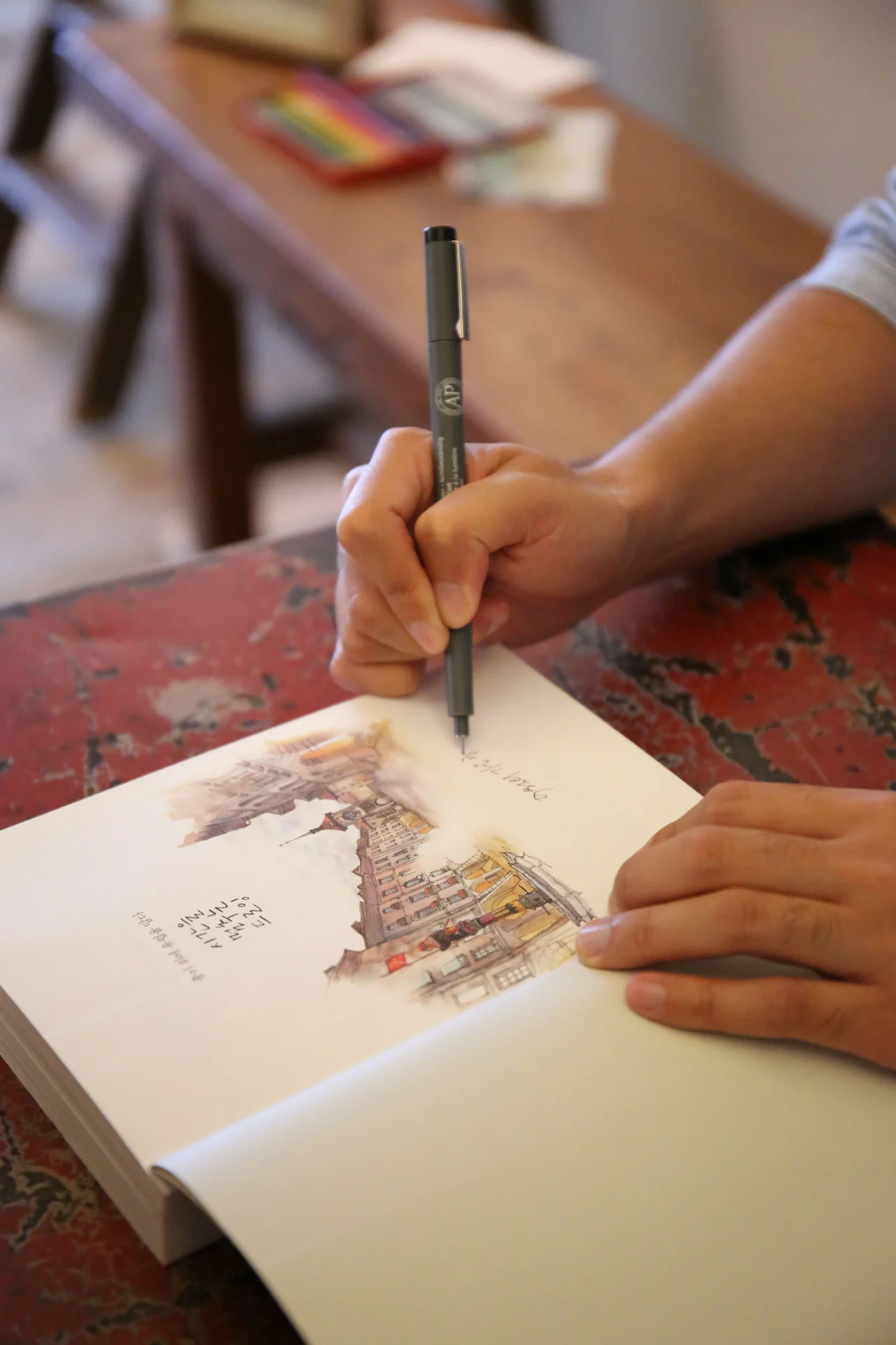 토크 콘서트의 공식 일정이 끝나고, 참석하신 분들을 위하여 리모 작가님께서 선물로 준비하신 "시간을 멈추는 드로잉"의 사인회가 시작되었습니다. 리모 작가님은 참석한 브런치 독자 한 분 한 분과 눈을 맞추고 못 다 나눈 이야기를 하면서 정성껏 사인을 해 주셨습니다.