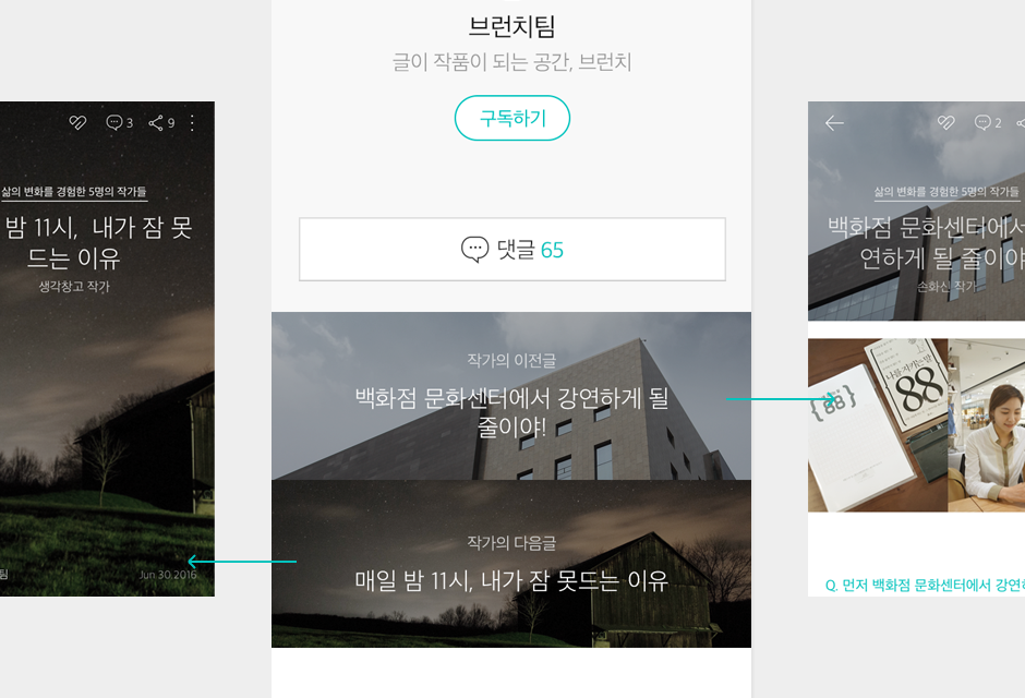브런치는 이번 게시글 화면 개선을 통해 어떻게 하면 작가님들의 글과 글이 더 잘 연결되고 독자들에게 더 잘 전달될 수 있을까 고민하였고, 앞으로도 끊임없이 고민하려 합니다.