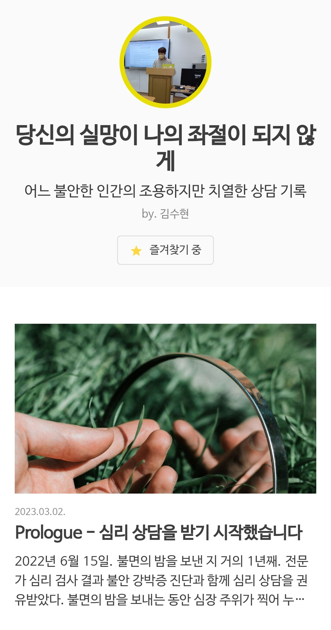 불안증 관련 상담 기록 원고를 정리해 투고하던 중