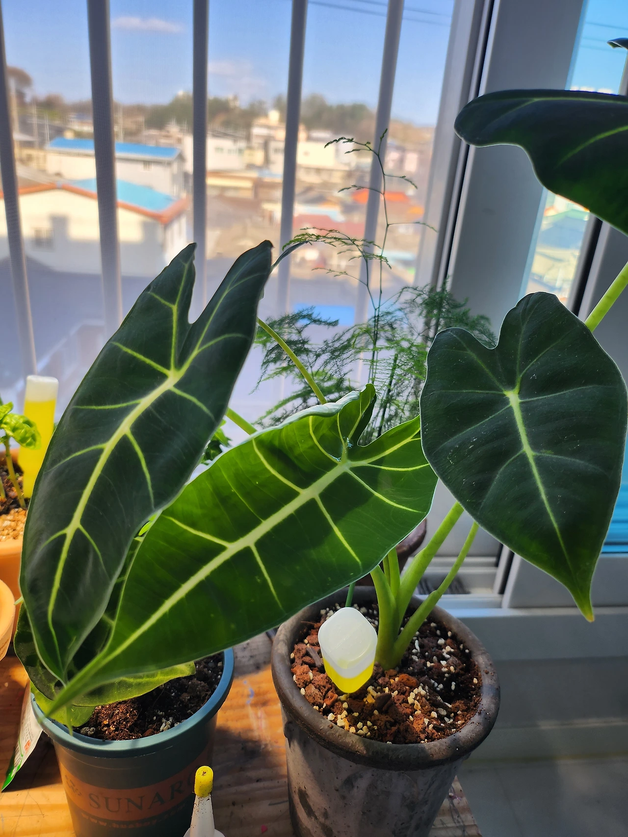 키우기 어렵다는 칼라데아 오나타도, 알로카시아 프라이덱도 돌돌 말린 새 잎을 연신 내고 있다.