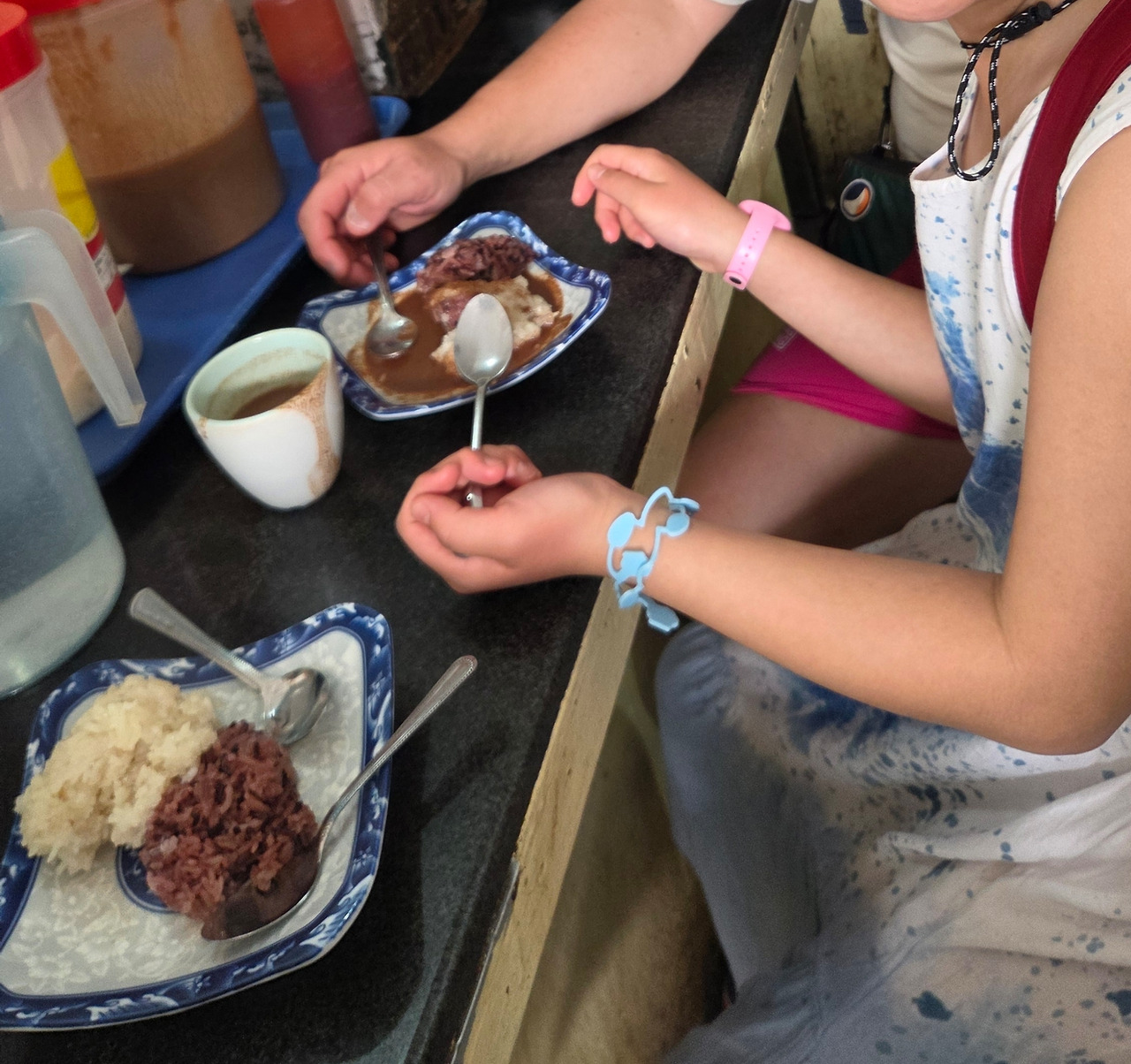 파인탄이라고, 찰밥에 엄청 진한 다크초콜릿을 끼얹어 먹는 음식이 두마게티에 유명한데(근처에 초콜릿 농장 즐비), 그 음식 하나만 전문적으로 파는 파인탄 거리가 숙소 바로 앞에 있었다.