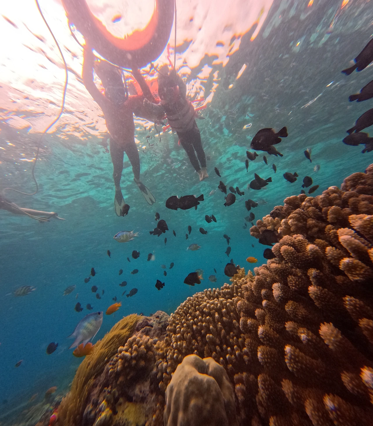 배우자랑 나는 진짜 신났다. 산호 정원이 어마어마했다. 희귀한 산호가 마구 널려있었다. 얼마나 색이 화려한지 바닷속에 네온사인 켜 둔 것처럼 느껴질 정도. 복어랑 거북이랑 랍스터랑 물뱀이랑 니모는 기본아이템이었고. 여기서 처음으로 오징어 군집을 봤다. 쪼끄맣고 미끈한 발로 아주 바쁘게 돌아다녔다.
