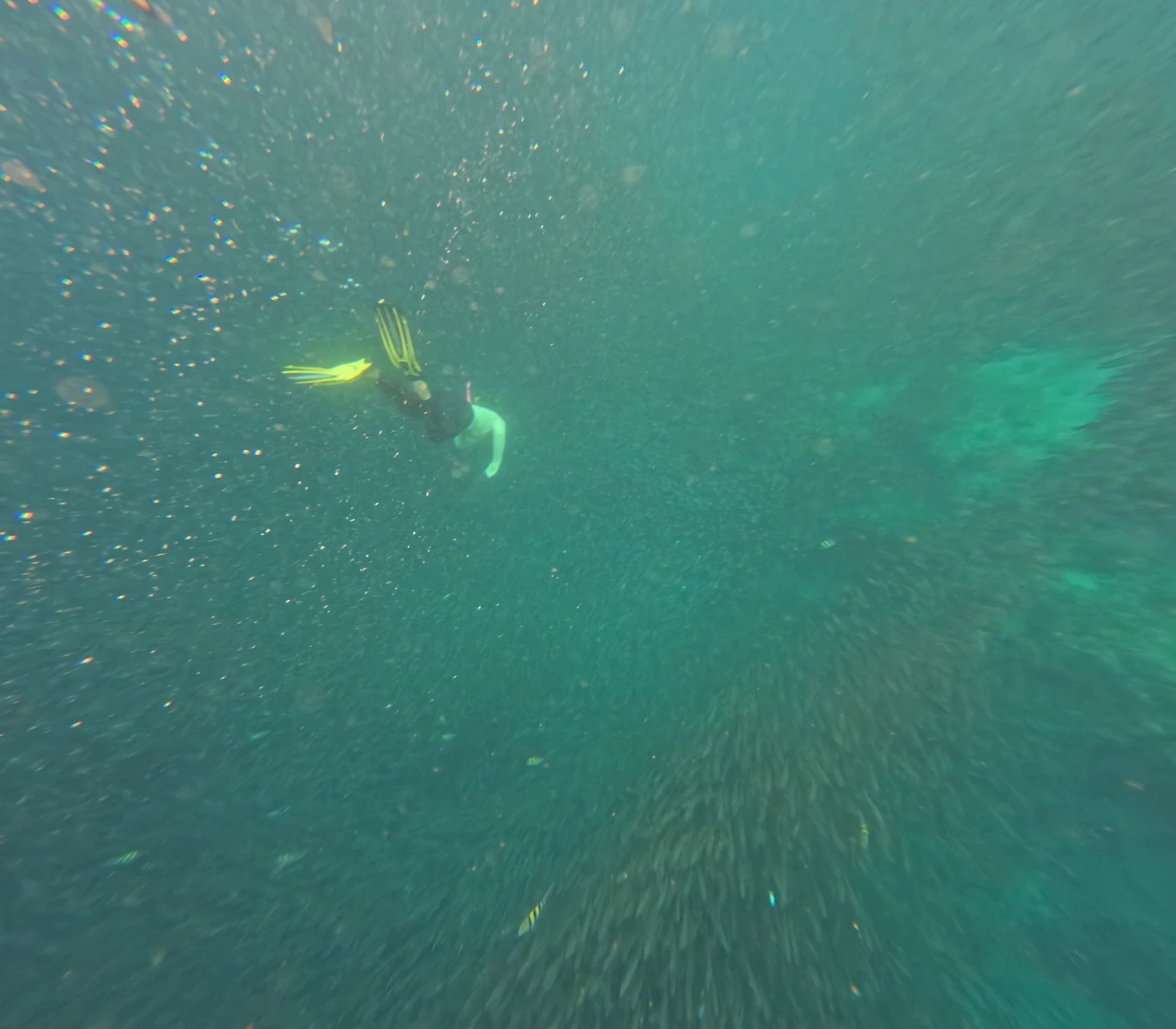 모알보알은 작은 해양생물들을 관찰하기 정말 좋은 곳이었다. 다만, 바다뱀이 많았다. 미끈하고 긴 바다뱀들이 구불구불 발 밑을 헤엄쳐 다녔는데, 애들이 겁낼까 봐 혼자 조용히 헤엄쳐 지나갔다. 맹독이 있어 물리면 바로 죽을 수도 있다고.