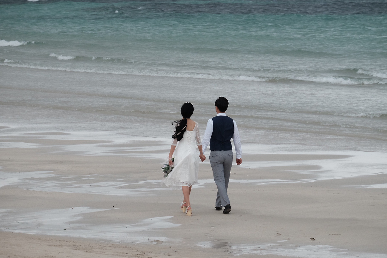 제주를 지나는 해변 어딘가에서 한 커플이 웨딩 촬영을 하고 있었다. 사람들은 저마다 발길을 멈추고 한 번씩 그들을 바라보았다.